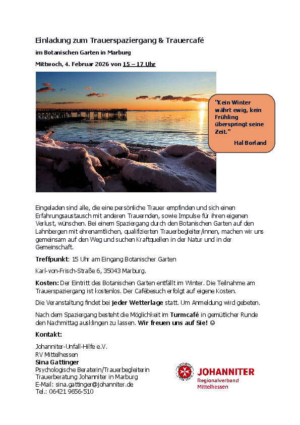 Das Trauercafé / der Trauerspaziergang der Johanniter ...