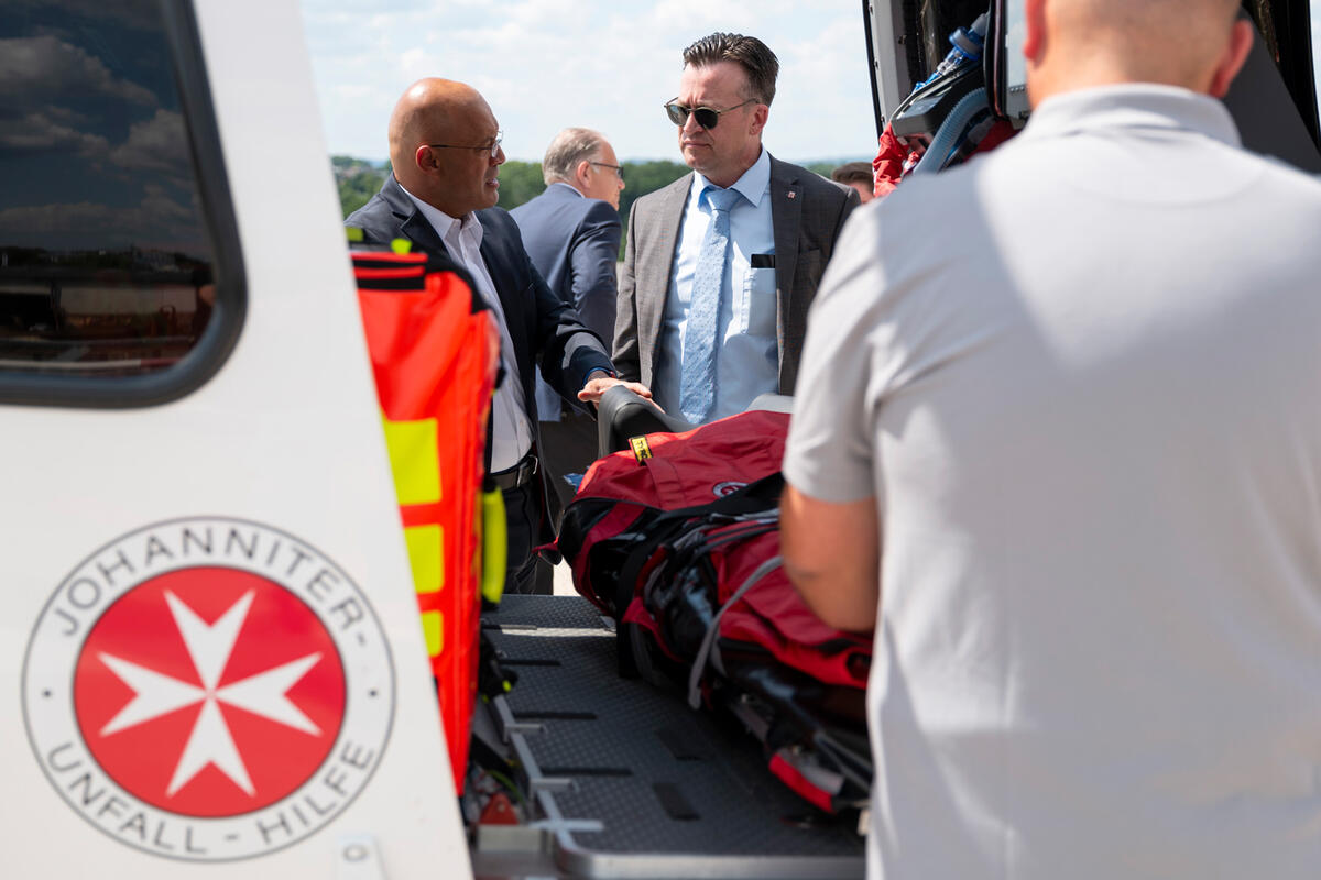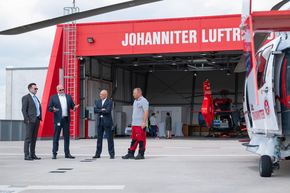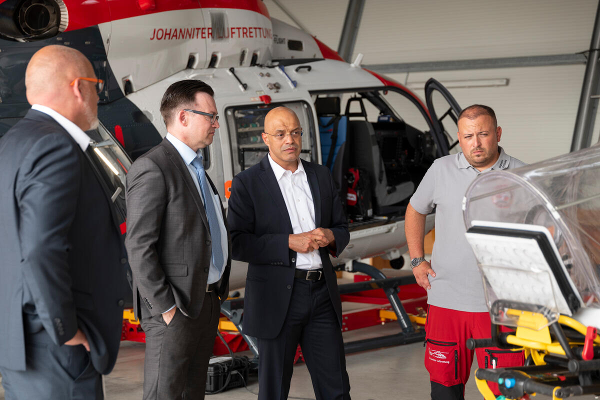 Abteilungsleiter Stefan Sydow, Hessisches Ministerium für Soziales und Integration, besucht das Luftrettungszentrum der Johanniter in Gießen