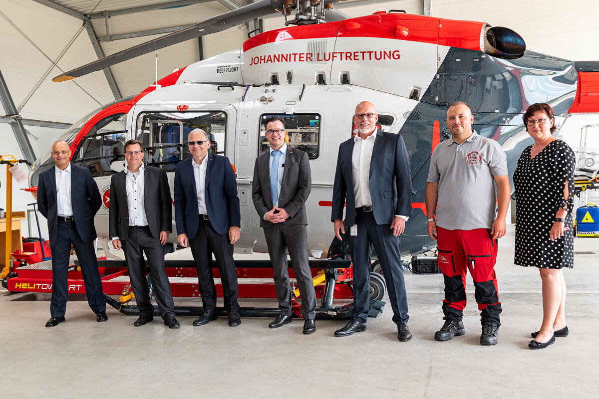 Eingeladen für ein persönliches Kennenlernen hatte Johanniter-Landesvorstand und Geschäftsführer der Johanniter Luftrettung (JLR), Oliver Meermann. Gemeinsam mit JLR-Geschäftsführer Frank Zabell, seines Zeichens selbst Pilot, dem Ärztlichen Leiter der Johanniter Luftrettung, Mumi Taleb, sowie Stationsleiter Johannes Jabs, präsentierte die Johanniter Luftrettung bei bestem Wetter ihre größte Maschine, die H 155 mit der Kennung D-HFLG, und ihr neuestes Flottenmitglied, die H 145 mit der Kennung D-HJLB.