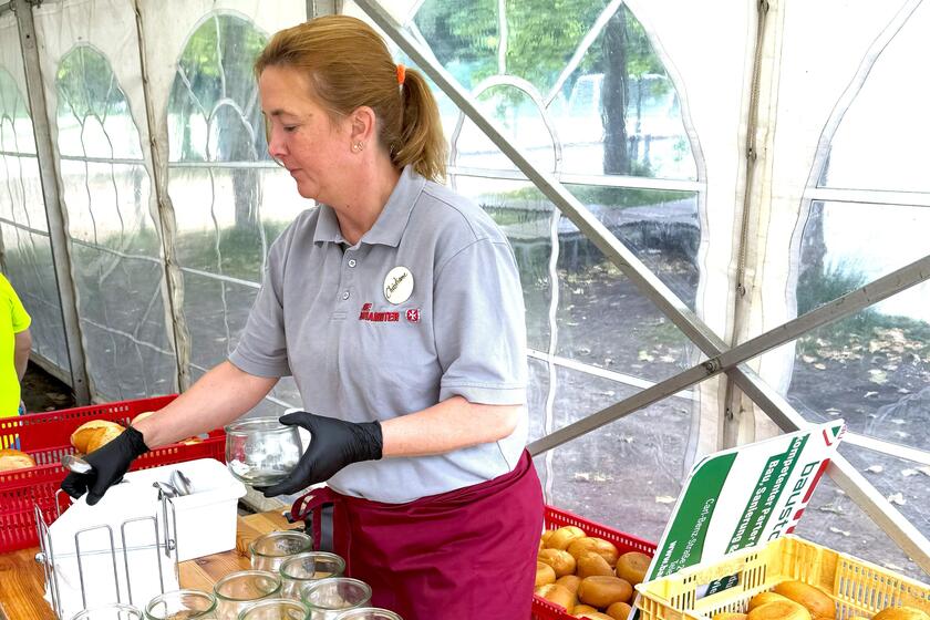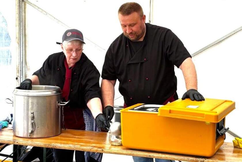 Erst das Match und dann eine deftige Kartoffelsuppe garniert mit Elfis Lächeln: Elfriede Folkerts aus Wiesmoor war eine Helfende der Johanniter-Unfall-Hilfe beim PingPongParkinson German Open 2025. Die Spielenden gaben alles am Netz, die Johanniter aus Oldenburg und Wiesmoor an der Kelle und im Sanitätsdienst. Am Wochenende vom 29. Mai bis 1. Juni fand in Oldenburg das German Open 2025 statt, ein internationales Tischtennisturnier, an dem mehr als 250 an Parkinson erkrankte Menschen teilnahmen. Hintergrund des Turniers ist es, Menschen mit der Erkrankung Parkinson in Bewegung zu bringen und ein Zeichen der Motivation und Hoffnung zu setzen. Wie bei jeder großen Sportveranstaltung wurde auch hier für die sanitätsdienstliche Absicherung der Spielenden und Besuchenden gesorgt. Die Oldenburger Johanniter übernahmen diese Aufgabe. So kam der Ball ins Rollen, vielmehr ins Fliegen. Schlussendlich kamen auch die Wiesmoorer Johanniter ins Boot und sorgten für heiße Mahlzeiten, unterstützt durch Kollegen des Oldenburger Kältebus-Teams, das gerade in der Sommerpause ist, aber bei der Essensausgabe in seinem Element. Je vier Wiesmoorer und zwei Kältebus-Teammitglieder servierten Spielenden aus 14 Nationen übers Wochenende hinweg insgesamt rund 1000 Portionen Erbsensuppe, Käse-Porree-Suppe, Kartoffelsuppe und Gemüsesuppe. Die Suppen wurden als vegetarische Variante gekocht und nach Bedarf angereichert. Die Essenden hatten vorher Wertmarken beim Veranstalter gekauft, so dass die Mengen bestens kalkuliert werden konnten. Ein paar Kellen mehr kochten die Johanniter in Wiesmoor jedoch immer mit und konnten so mit den nach Oldenburg verbrachten Leckereien auch den Sanitätsdienst mitversorgen. Dabei setzten die Johanniter im Sinne der Nachhaltigkeit auf Mehrweggeschirr. 40 Weckgläser schafften den besonderen Einsatz nicht, abgesehen davon war das Wochenende ein voller Erfolg.
