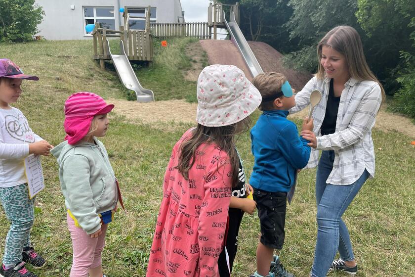 Zum Abschluss veranstalteten die angehenden Erzieherinnen und Erzieher auf dem Gelände der Johanniter-Kita ein Sommerfest am 8. Juli 2022. Nachmittags konnten die Kinder an verschiedenen Stationen entweder sportlich aktiv werden oder sich kreativ ausleben.