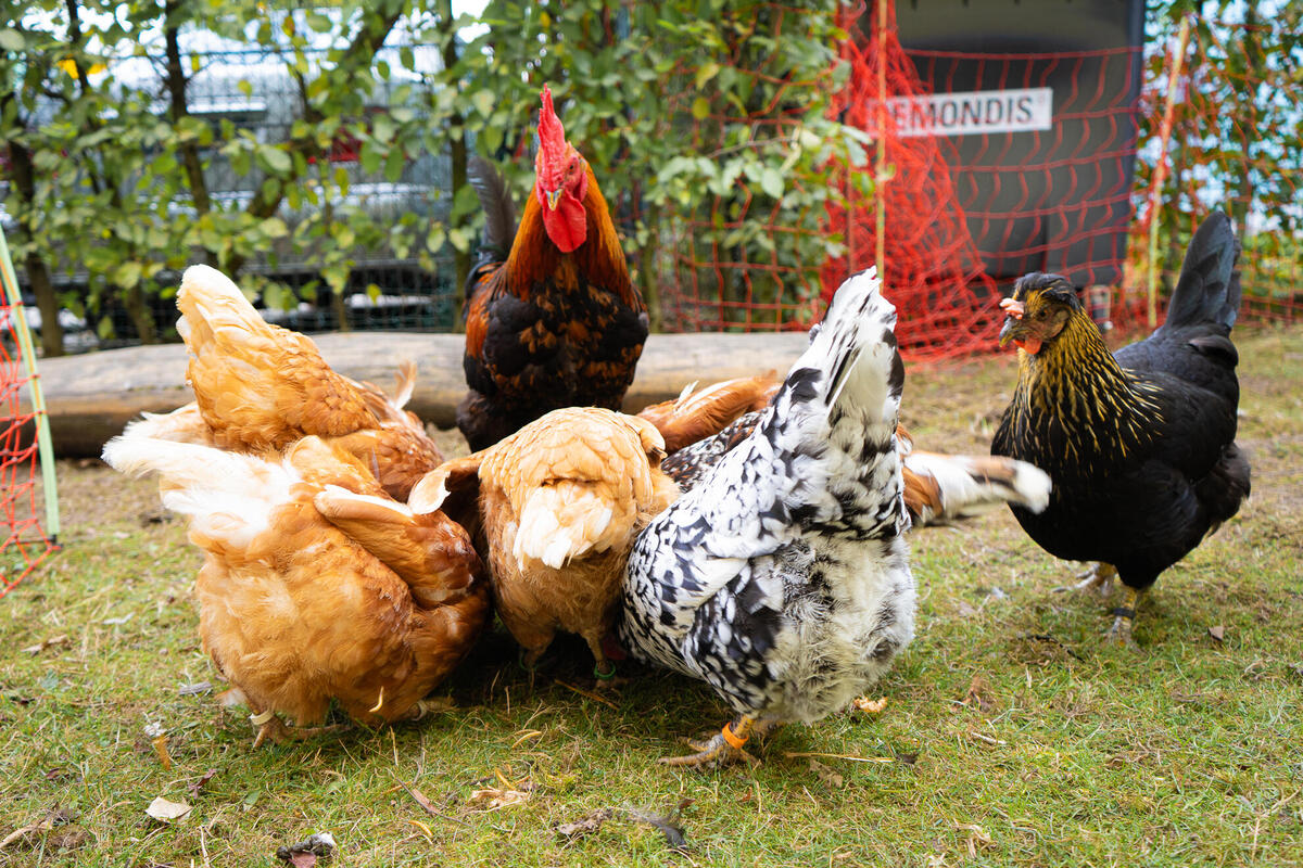 Schon früh am Morgen drängen sich kleine Gesichter an die Fenster der Kita SöSeeLöwen und der Krippe Kastanienallee in Langenhage Draußen scharrt Hahn Caruso, umringt von Henne Belinda und acht weiteren Artgenossen. Vier Wochen lang lebte die Hühnerschar in der Einrichtung im Rahmen eines Umweltbildungsprojekts der Region Hannover.