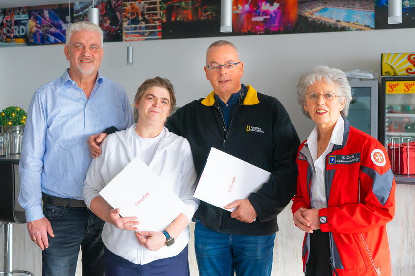 Beide blicken auf beeindruckende Karrieren bei den Johannitern in Langenhagen zurück: Antje Poetsch ist seit 25 Jahren engagiert im Dienst und Justin Bender seit 30 Jahren. Ihre langjährige Arbeit wurde nun gemeinsam gewürdigt.