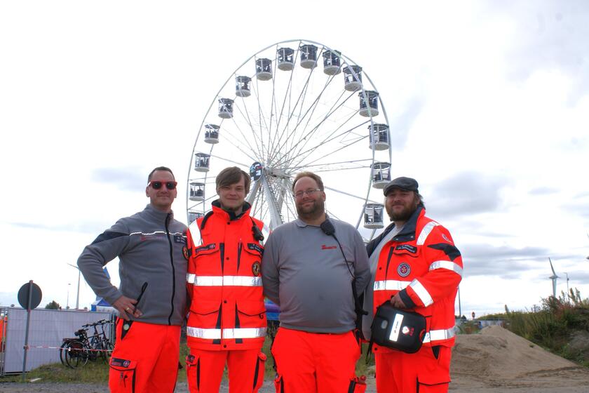 Wo sonst Karosserien, Motoren und Reifen zusammenfinden, wurde am Samstag, 14. September gefeiert. Das Emder Volkswagen-Werk (VW) feierte mit einem Familienfest seinen 60. Geburtstag. 22.000 Anmeldungen gab es für die Feierlichkeit im Vorfeld, mit letztendlich 25.000 Besuchenden rechnete der Autobauer. Rund 30 Helfende der Johanniter-Unfall-Hilfe aus den Ortsverbänden Emden, Delmenhorst, Garrel und Oldenburg unterstützten den Werksrettungsdienst. In drei von den Johannitern errichteten Unfallhilfsstellen (UHS) standen Rettungskräfte der Johanniter und des Werks bereit. Die Stimmung war gut bei den Besuchenden in allen Altersklassen und die Johanniter hatten einen ruhigen Dienst, fasst Führungskraft Julian Kipshagen (Oldenburg) zusammen. Lediglich wenige Bagatellen pro UHS mussten behandelt werden. Der Tag hatte für alle Helfenden früh angefangen. Die UHS wurden bereits um 6.30 Uhr aufgebaut. Die Emder sammelten sich rund eine Stunde vorher, die Kollegen mit weiterer Anfahrt sogar zwei Stunden zuvor. Bis zum Ende der Veranstaltung am Nachmittag boten die Johanniter Anlaufpunkte für Besuchende mit Problemen und liefen Streife auf dem Werksgelände.