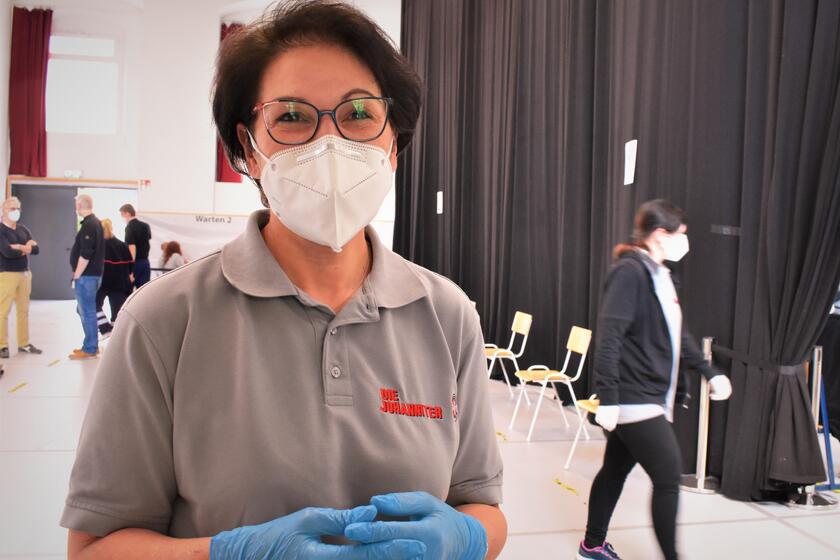 Seit Mitte Dezember stehen die Mitarbeitenden der vier Hilfsorganisationen für den Betrieb des Zentrums bereit. Innerhalb kürzester Zeit hat sich ein gut funktionierendes System entwickelt, in dem viele Zahnrädchen routiniert ineinandergreifen. „Wir sind untereinander ein wirklich gutes Team“, sagt Stefanie Gaede. Vor allem die Zusammenarbeit mit den Mitarbeitenden der anderen Organisationen klappe hervorragend. “Wir impfen ja hier alle zusammen, das darf man nicht außer Acht lassen“, sagt die 56-Jährige. Überhaupt schwingt bei der Cellerin eine gute Portion Idealismus mit. Die Aufgabe im Impfzentrum ist für sie nicht einfach nur ein Nebenjob. „Hiermit kann ich ein bisschen etwas Gutes tun“, sagt sie, dreht sich um und sagt freundlich: „Hallo, guten Tag, kommen Sie ruhig näher. Darf ich Ihren Zettel sehen?!“