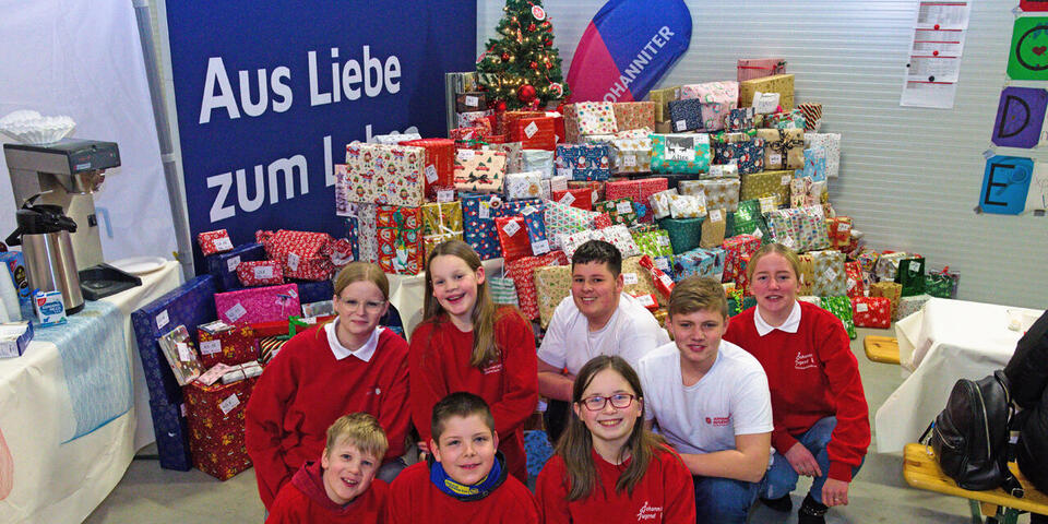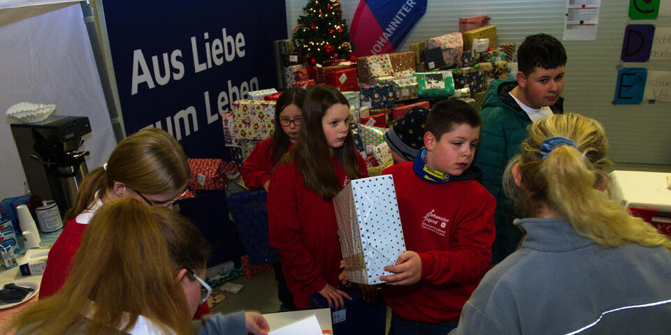Ein Berg von weihnachtlich verpackten Geschenken türmt sich in der Halle am Porscheweg in Cloppenburg auf, in der normalerweise die Katastrophenschutz-Einheit des Ortsverbands Cloppenburg der Johanniter-Unfall-Hilfe zuhause ist. 281 Wunschzettel von Kindern und Jugendlichen aus den Jugendhilfe-Einrichtungen im Landkreis Cloppenburg hatten die Johanniter erhalten und dafür Wunschpaten gesucht, die die Geschenke kauften, weihnachtlich verpackten und bei den Johannitern abgaben. Jetzt wurden die Pakete im Gesamtwert von mehr als 5000 Euro an die Einrichtungen übergeben, die sie während der eigenen Weihnachtsfeiern an die Kinder weiterreichen. Die Pakete waren nach den Einrichtungen sortiert, Aufkleber sorgten dafür, dass jedes Kind auch tatsächlich das für ihn bestimmte Geschenk bekam. Bei so viel Aufwand braucht Carmen Niemann, Koordinatorin für Schulsanitätsdienst der Cloppenburger Johanniter und Organisatorin der Aktion „Kleine Wünsche“, Unterstützung. Deshalb packten Mädchen und Jungen der Johanniter-Jugend kräftig mit an. „Es macht Spaß, anderen Kindern eine Freude zu bereiten, die nicht so viel Glück im Leben hatten wie wir“, erzählt Leonie-Sue Plewa, Jugendgruppenleiterin von der Johanniter-Jugend Cloppenburg.