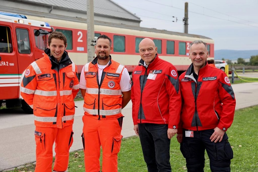 Abgeschlossen wurde die Reise mit dem Besuch einer ManV-Übung unter Mitwirkung der Forschungsabteilung der JUH Österreich. Hier konnte die Arbeit des K-Zuges unter Leitung von Clemen Giebel beobachtet werden. Insgesamt ist der hohe Stellenwert von ehrenamtlichen Johannitern im Rettungsdienst und Katastrophenhilfsdienst auffällig.