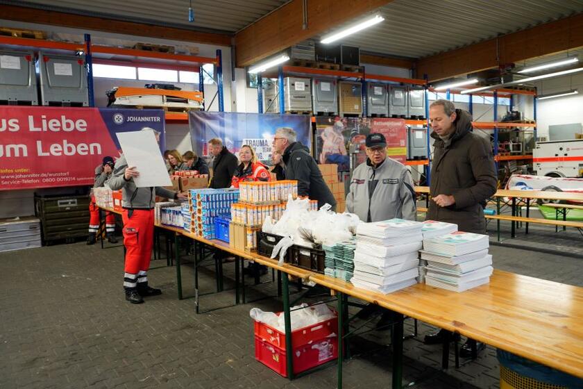 Wo sonst Einsatzfahrzeuge für den Katastrophenschutz stehen, wurde heute Morgen eine Packstraße aufgebaut. Mehl und Zucker, Speiseöl und Kekse, Seifen und Zahnbürsten, Papierblöcke und Malstifte stapelten sich auf den Tischen in der Fahrzeughalle der Johanniter. Um zwölf Uhr startete das große Packen. Gemeinsam mit ehrenamtlich Helfenden waren bei der diesjährigen Aktion für den Weihnachtstrucker Wunstorfs Bürgermeister Carsten Piellusch und der CDU-Bundestagsabgeordnete Hendrik Hoppenstedt mit dabei. Ebenfalls packten vom Lions Club Steinhuder Meer dessen Präsident Stefan von Kalben und Angela Klose mit an. Ihre Spende von 4000 Euro hatte die Packaktion möglich gemacht.