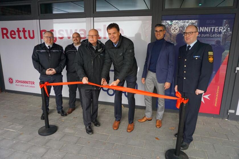 Die Johanniter-Unfall-Hilfe in Bremen hat das Schichtsystem im Rettungsdienst an einem neuen Standort im MEDICUM beim am Klinikum Bremen-Ost (KBO) aufgestockt und erweitert damit erneut die Notfallrettung in der Hansestadt. Nun wurde die neue Rettungswache offiziell eröffnet. Dafür sorgten tatkräftig Innensenator Ulrich Mäurer und Johanniter-Regionalvorstand Christian Dieckhöfer. Seit April des vergangenen Jahres beteiligen sich die Johanniter aufgrund der erhöhten Bedarfe am Regelrettungsdienst der Stadt Bremen – zunächst mit einem Rettungswagen im zwölf Stunden Schichtsystem auf Wache 7 und dem Notfalltransportwagen auf der Wache 95 am Standort des Ortsverbands der Johanniter in Habenhausen. Jetzt läuft der Rettungswagen (RTW) nun 24/7 von der Rettungswache 3 im MEDICUM. Dann sind 24 Vollzeitstellen belegt. Ziel des neuen Standortes ist es, die rettungsdienstliche Versorgung im Bremer Osten zu verbessern. In dieser Wache sind auf rund 440 Quadratmeter zwei Leistungserbringer: Die Berufsfeuerwehr Bremen und die Johanniter-Unfall-Hilfe zusammen tätig. Insgesamt sind ab sofort drei RTW an der Wache im MEDICUM stationiert.