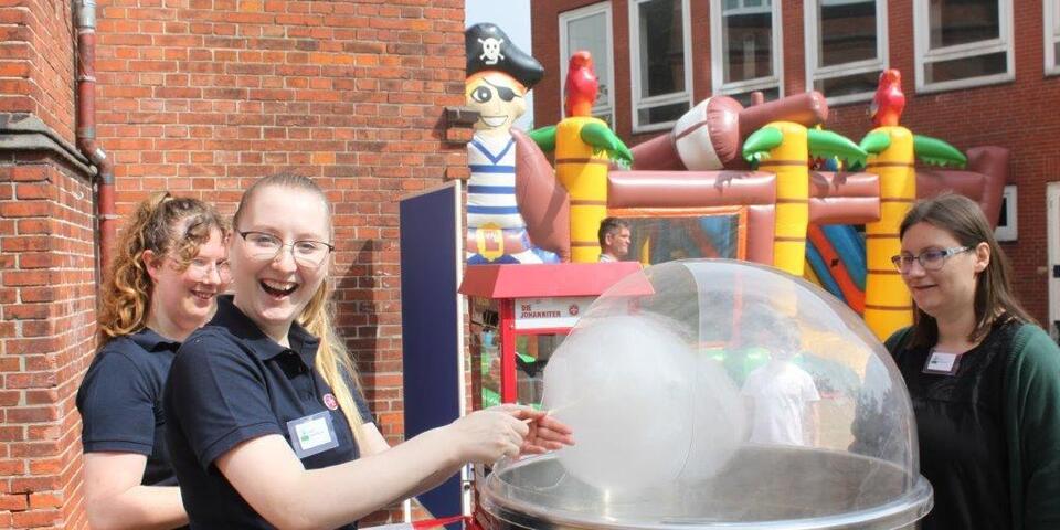 Richtig was los war am vergangenen Wochenende auf dem Schulhof der Wallschule in Emden. Der Johanniter-Kinderhort Grüner Baum am Wall hatte gemeinsam mit dem Ortsverband Emden der Johanniter-Unfall-Hilfe zum Sommerfest eingeladen. Mehr als 200 Gäste waren gekommen, geboten wurde eine ganze Menge. Für die Kinder gab es Kinderschminken, die große Johanniter-Hüpfburg zum Herumtoben, zahlreiche Spiele und vieles mehr. Für die Erwachsenen hatte die ehrenamtliche Helferschaft den Behandlungsplatz 50 aufgebaut, der auch nach der Hochwasser-Katastrophe im rheinland-pfälzischen Ahrweiler im Einsatz war. Zudem gab es Kaffee, selbstgebackenen Kuchen, Popcorn und andere Leckereien. „Wir haben den Tag genutzt, um unsere renovierten und neu gestalteten Räume vorzustellen“, berichtet Einrichtungsleiterin Kim-Jasmin Westerhof vom Hort Grüner Baum am Wall. Spenden gesammelt wurden auch: am Ende kamen 271,98 Euro zusammen, die der Hort jetzt der Emder Tafel spendet.