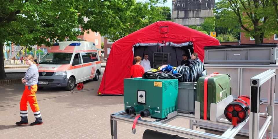 Der Ortsverband nutzte das Sommerfest, um sein zehnjähriges Bestehen nachzufeiern. Das war eigentlich schon 2020 der Fall, die große Feier aber fiel coronabedingt aus. „Da haben wir uns gesagt, wir holen das jetzt in einem kleineren Rahmen nach“, sagte Cord Siedenberg, Ortsbeauftragter der Emder Johanniter. Der Standort in Emden war 2007 als Stützpunkt des Ortsverbands Norden eingeweiht worden. 2010 wurden die Emder Johanniter in die Selbstständigkeit entlassen und sind seitdem kontinuierlich gewachsen. Heute haben sie mehr als 40 hauptamtlliche Mitarbeitende vor allem im Hort, in der Kita Grüner Baum und in der Sozialpädagogischen Lernhilfe sowie rund 50 ehrenamtlich Aktive. Die ehrenamtliche Helferschaft stellt unter anderem im Auftrag des Niedersächsischen Innenministeriums den Gerätewagen Sanität für den Einsatzzug des Landes Niedersachsen und leistet Sanitätsdienste.