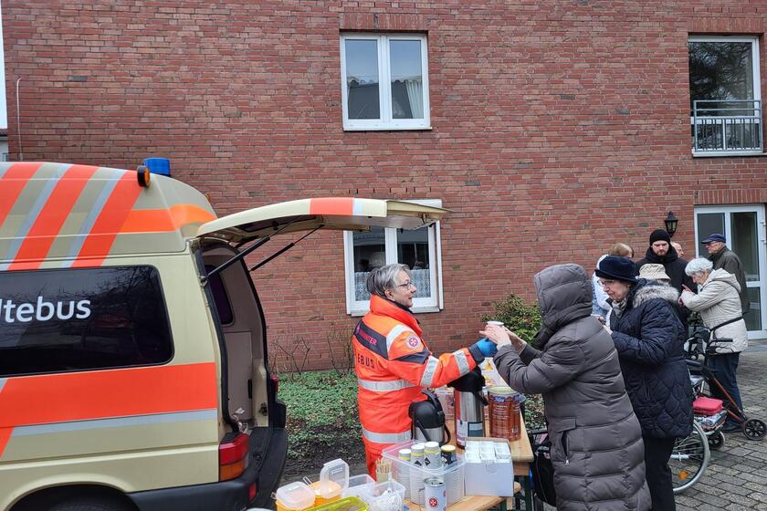 Die Bewohner*innen wurden von ihr mit den Snacks und Mahlzeiten versorgt, die auch die Obdachlosen bekommen würden. Auch Fragen rund um den Kältebus und die Johanniter-Obdachlosenhilfe hat Karin Stelljes beantwortet. Ihr Besuch ist sehr gut bei den Bewohnern und Bewohnerinnen angekommen. Im Frühling möchte die Ehrenamtliche einer weiteren Einladung folgen. Dann macht sie Station im Johanniter-Begegnungszentrum am Buntentorsteinweg.