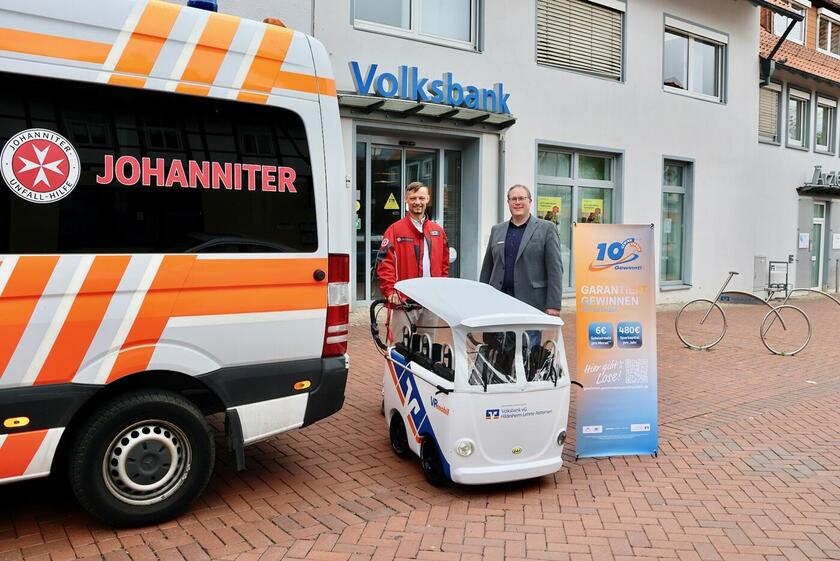 Thomas Böttger hatte sich für die „Bennigser Zwerge“ bei der Volksbank eG Hildesheim-Lehrte-Pattensen beworben, die mehrere dieser Fahrzeuge verlost hat. Bewerben konnten sich Kindertagesstätten, die von gemeinnützigen Vereinen, Kirchen oder öffentlichen Trägern betrieben werden. Das gilt auch für die Johanniter-Unfall-Hilfe e.V. (JUH). Der Johanniter-Ortsverband Deister betreibt die Einrichtung „Bennigser Zwerge“ seit 2024. Damals eröffnete die Kita als neue Einrichtung im Springer Ortsteil Bennigsen, nachdem dem Stadt eine frühere Förderschule zur Kita umgebaut und diese dann an die JUH übergab. Die Bewerbung der Bennigser war erfolgreich. Der VRmobil-Kinderbus im Wert von 3.900 Euro wurde jüngst vom Springer Geschäftsstellenleiter Wilhelm Niemeyer an Kita-Leiter Böttger übergeben. Diese Kinderbusse wurden aus dem Reinertrag des Gewinnsparens finanziert und sind somit den Volksbank-Gewinnsparern zu verdanken (jeder trägt mit seinem Los dazu bei, dass die Volksbank in ihrer Region Zuwendungen für soziale, kulturelle oder andere gemeinnützige Zwecke vergeben kann).