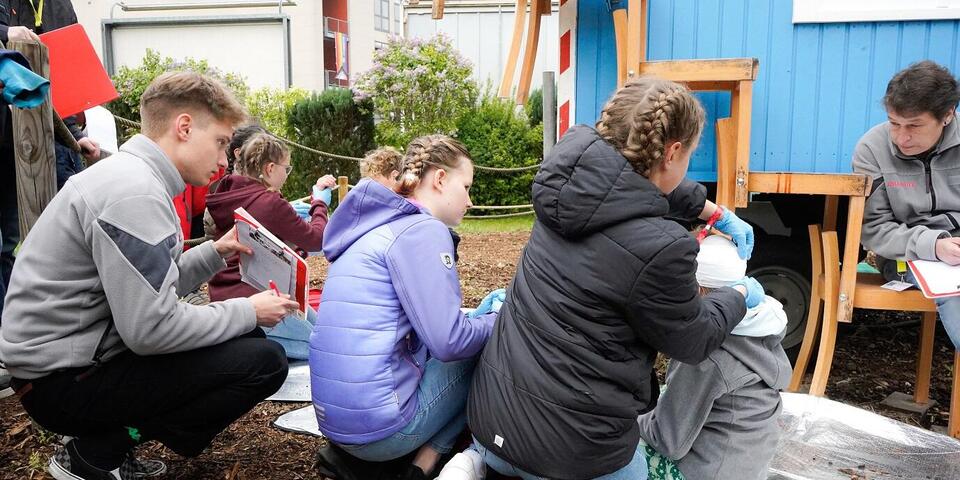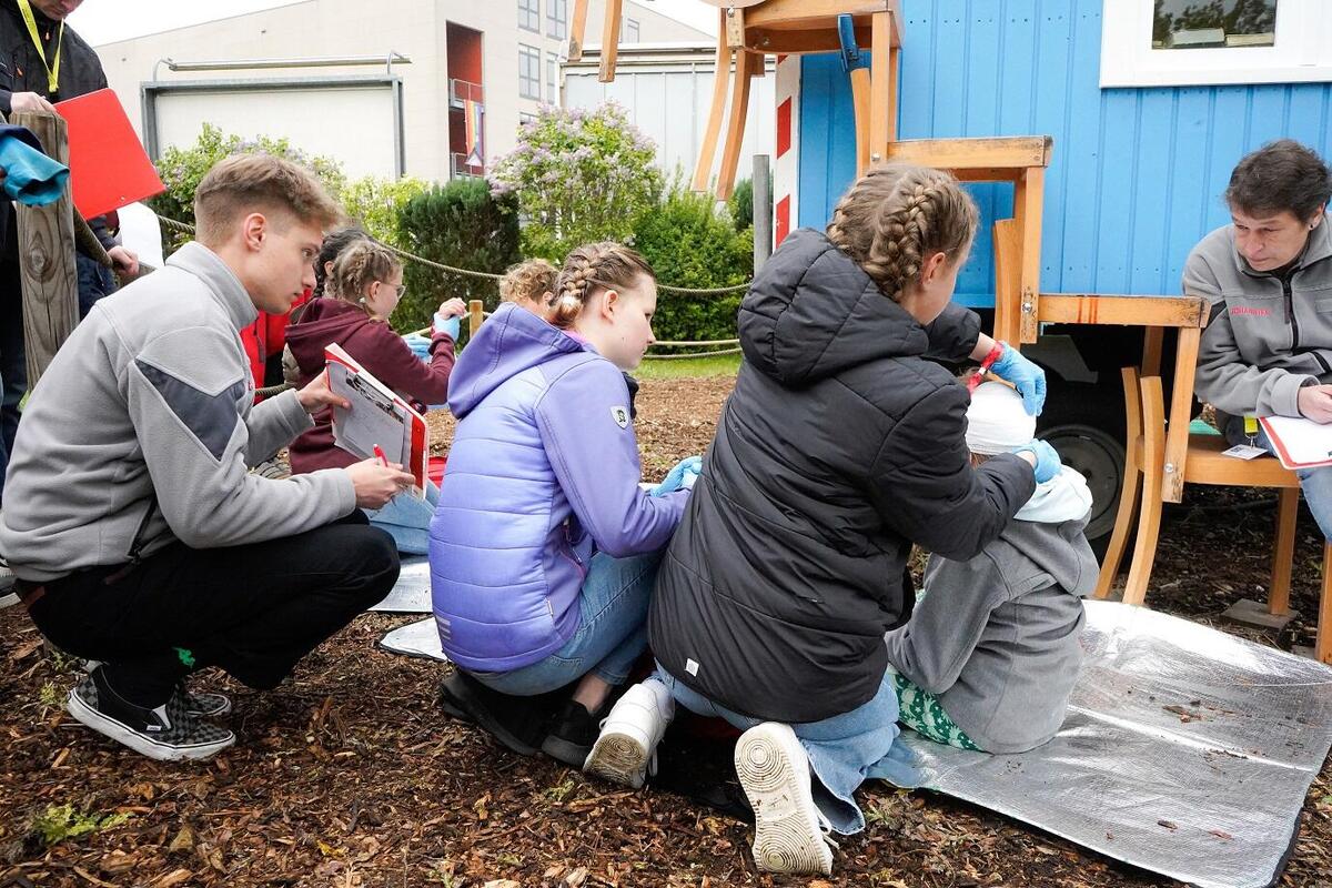 Fünf Teams der Johanniter aus Hannover und dem Landkreis Nienburg/Weser hatten sich den Ausflug geradezu verdient. Sie waren im Vorjahr beim Landeswettkampf in Niedersachsen/Bremen erfolgreich gewesen und traten als Landessieger ihrer jeweiligen Kategorie an. Neben der C-Mannschaft aus Landesbergen (Kinder im Alter von sechs bis elf Jahre) maßen sich aus Hannover auch die Rettungshundestaffel, ein A-Team (Sanitätshelfende), eine Mannschaft aus professionellen Rettungskräften und das pädagogische Team der Ganztagsbetreuung der Rosa-Parks-Grundschule. Letzteres brachte in ihrer Kategorie E (Erzieher*innen) Silber nach Hause. Begleitet wurden alle Wettbewerbsteilnehmenden von ihren Familien, Freunden und Schlachtenbummlern. Es war mal wieder eine Gelegenheit zum Wiedersehen und Austausch, zur Fort- und Weiterbildung und nach einer fröhlich-feierlichen Siegerehrung auch zum Feiern.