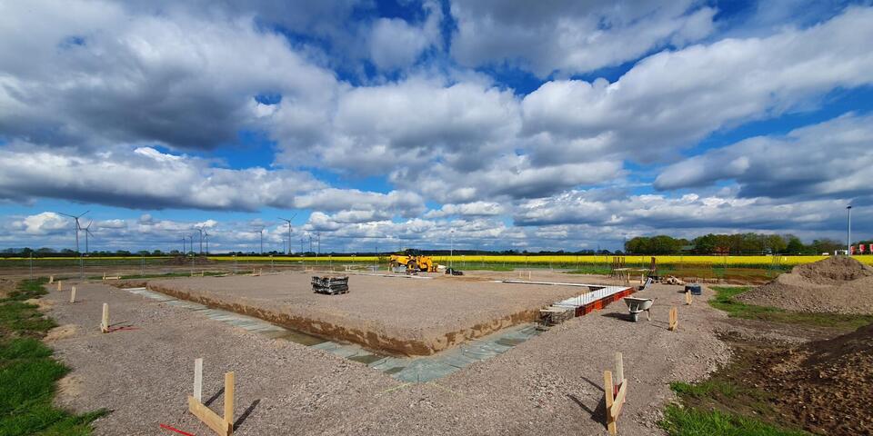 Gute Nachrichten auf vielen Ebenen: Die Außenanlage der Kita Kinder(t)räume in Estorf/Leeseringen ist frisch eröffnet – und die neue Fahrzeughalle des Ortsverbands Landesbergen wächst jetzt im Sommer zügig heran.