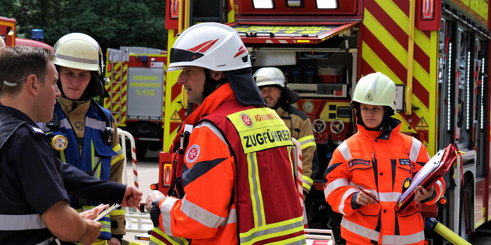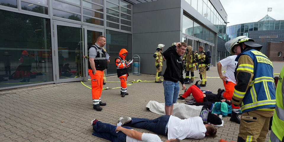 Es würde einem angst und bange werden, wäre das, was am Sonntag in Bremerhaven geschah, keine großangelegte Übung gewesen. Täuschend echt wurde eine Fettexplosion in der Eishalle simuliert, um für den Ernstfall zu trainieren. Mit dabei waren auch Johanniter aus dem Ortsverband Oldenburg.