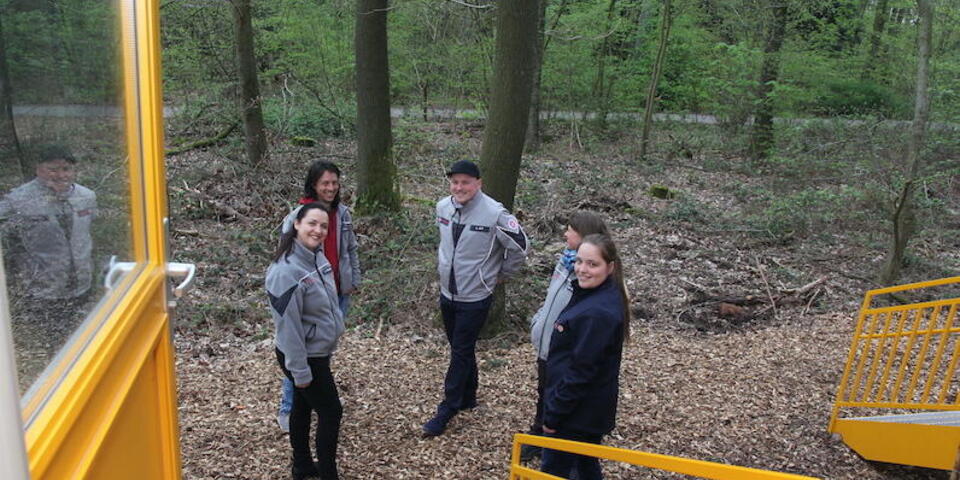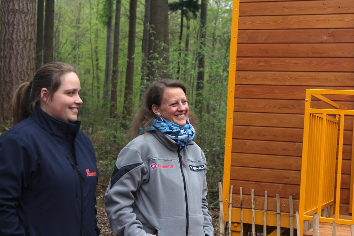 Der Finkota-Bauwagen leuchtet am vorigen Freitag in der vormittäglichen Sonne im Deister-Wald: Frisch lackiert glänzt die Außenfassade aus nachhaltig angebautem Lärchenholz; innen duftet es nach Fichte und Kiefer – den Holzsorten für Innenbeplankung und die Möbel. Neugierig schauen sich die Gäste des OV Deister im Bauwagen, Typ „Bibi“, des bayerischen Herstellers um. Die kleine Küche, Gasheizung, das WC mit Trenntoilette, der Schrank mit Steckplatz für einen leistungsstarken Akku (hält etliche Tage), die kindgerechten Bänke mit sinnreich eingebauten Stauräumen. Zwei Treppen führen zu einer Terrasse und dann hinein in den heimeligen Wagen. Der steht auf einem Areal der Landesforsten nahe dem Dorf Wennigser Mark (einem Ortsteil der Gemeinde Wennigsen). Der Standort ist Teil eines Landschaftsschutzgebiets und trotzdem nah am Dorf. Und nur weniger hundert Meter vom Dorfgemeinschaftshaus mit dem Corvinus-Zentrum und der zweiten Johanniter-Kita im Ort, den „Märker Strolchen“.