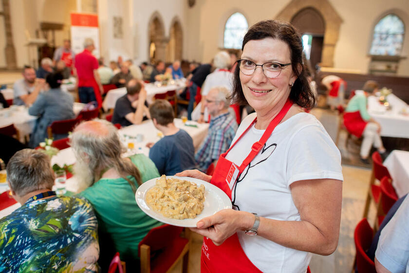 Nach der Premiere in diesem Jahr laden die Johanniter-Hilfsgemeinschaft Oldenburg (JHG), der Ortsverband Oldenburg der Johanniter-Unfall-Hilfe und die Evangelisch-lutherische Kirchengemeinde Oldenburg auch 2025 wieder zur Vesperkirche ein. „Aufgrund der großen Nachfrage werden wir das Angebot deutlich ausbauen“, verrät Anja Maud Siegert, Vorsitzende der Johanniter-Hilfsgemeinschaft Oldenburg. Die Zahl der Termine wird verdoppelt: statt an sechs öffnet im Winter 2025 die Oldenburger Vesperkirche an zwölf Abenden. Start ist am 6. Februar. Bis Ostern sind an jedem Donnerstagabend von 18 bis 20 Uhr in der Oldenburger Garnisonkirche an der Peterstraße 41 die Türen einladend geöffnet. Dann heißt es wieder: „Ein warmes, kostenloses Abendessen in freundlicher, wertschätzender Gemeinschaft“. Das Angebot richtet sich in erster Linie an alle, die nicht einfach „mal schön essen gehen“ können, an Menschen mit wenig Einkommen und ohne eigene Wohnung, aber auch an Alleinstehende, kinderreiche Familien und andere, die gerne einmal entspannt in netter Gesellschaft speisen möchten und sonst nicht die Möglichkeit dazu haben. Und auch das ist ein Motiv: „Mal raus aus der eigenen Blase. Wir wollen auch Menschen aus verschiedenen Milieus an einer Tafel zusammen und miteinander ins Gespräch bringen“, sagt Pastor i. R. Andreas Thibaut, Initiator der Oldenburger Vesperkirche.