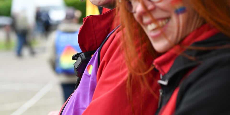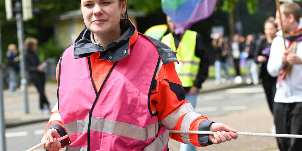Christine Peter besetzt seit April die neue Servicestelle Ganztag in der Regionalgeschäftsstelle Weser-Ems in Oldenburg. Für sie war es der erste CSD und die Teilnahme selbstverständlich. Sie nahm die Chance wahr, sich bei den Johannitern einzubringen und sich für deren Werte einzusetzen: "Jeder sollte sich frei entfalten dürfen, seine Empfindungen und seine Sexualität."