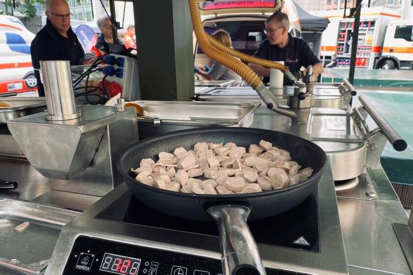 Zweimal mussten die Helfenden und Besucher gemeinsam unter den Pavillons verharren, um kurze Regenschauer abzuwarten, dann aber strahlte wieder die Sonne um die Wette mit allen Beteiligten. Der Aktionstag "Retten. Schützen. Helfen." am Sonnabend in der Bremer Innenstadt war ein voller Erfolg! Die Johanniter haben sich auf dem Ansgari-Kirchhof mit tollen Aktionen präsentiert, die super beim Publikum angekommen sind. Vor allem die Hunde unserer Rettungshundestaffel, das Stauhelfer-Motorrad und die Hüpfburg zogen viele interessierte Besucher an. Flankierend dazu übten sich etliche Passanten in der Wiederbelebung nach Herzstillstand. Unser Erste-Hilfe-Trainer Stefan Rein hatte dafür extra seine beiden "Little Annes" mitgebracht und gleich gegenüber konnte man eine VR-Brille aufsetzen und sich in einem virtuellen Unfall-Szenario wiederfinden. Unser lieber Kollege Stephan Bentlage von den MSH hat während des Tages die Moderation übernommen und das hervorragend gemeistert! Für das leibliche Wohl gab es super-leckeren Johanniter-Matjes, Currywurst und Fischstäbchen im Brötchen aus der Feldküche. Gekocht wurde zugunsten des Bremer Kältebusses. In der Spenden-Box sind dafür rund 350 Euro gelandet. Der Tag hat enorm viel Spaß gemacht und war sehr kurzweilig.
