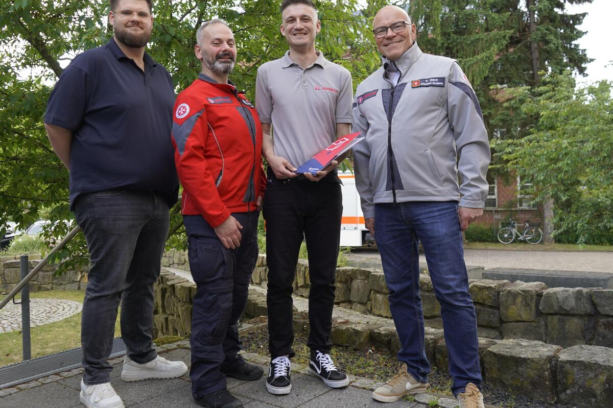 Nun konnte er seine Urkunde offiziell von Akademieleiter Kersten Enke und im Beisein von Akademie-Projektleiter Konstantinos Lazaridis sowie Maximilian Kairat, Fachbereichsleiter Rettungsdienst in Hildesheim, entgegennehmen. Auch seine Stelle als Notfallsanitäter in Hildesheim hat er bereits angetreten: „Ich freue mich sehr, dass ich nun etwas zurückgeben kann“, erklärt der 34-Jährige. „Ich hatte sehr viel Unterstützung durch die Akademie und die Wache. Nur so konnten wir zahlreiche bürokratische Herausforderungen überwinden oder mich kurzfristig von meiner Arbeit an der Wache freistellen, wenn an der Akademie die erforderlichen Lerninhalte im Stundenplan angesetzt waren.“