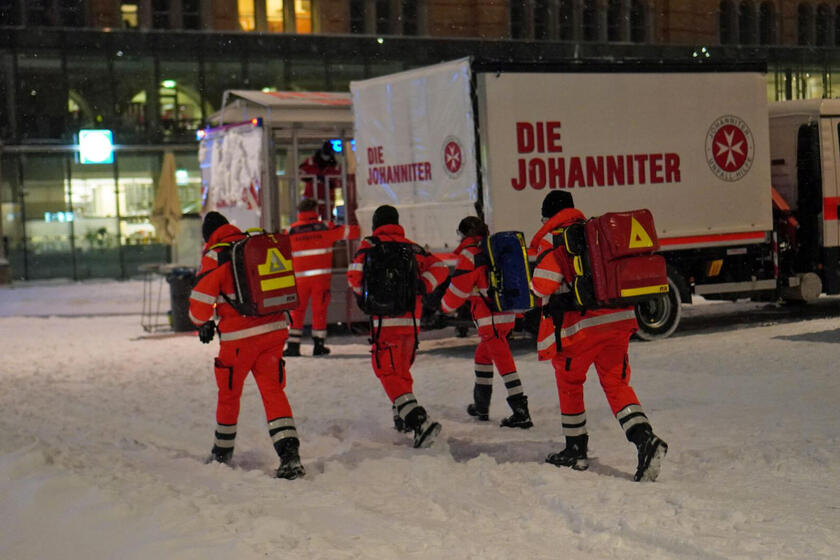 Starker Schneefall und eingefrorene Weichen brachten den Bahnverkehr rund um Hannover am Sonntag zum Erliegen. Rund 250 Bahnreisende strandeten im Hauptbahnhof und mussten nach einer Alternative für die Weiterfahrt suchen. Einige konnten per Taxi weiterreisen, andere mussten einen längeren Zwischenstopp einlegen und nahmen die Hilfe der Johanniter und die bereit gestellten Aufenthaltszüge in Anspruch. 29 Einsatzkräfte aus dem Ortsverband Hannover-Wasserturm hatten sich am frühen Abend über nur schwer befahrbare Straßen zum Hauptbahnhof begeben und dort in der Eingangshalle vor dem DB-Reisezentrum eine Versorgungsstelle aufgebaut. Mit Nudeln mit Tomatensauce sowie heißem Tee und Kaffee konnten sie die plötzliche Not vieler Passagiere lindern.