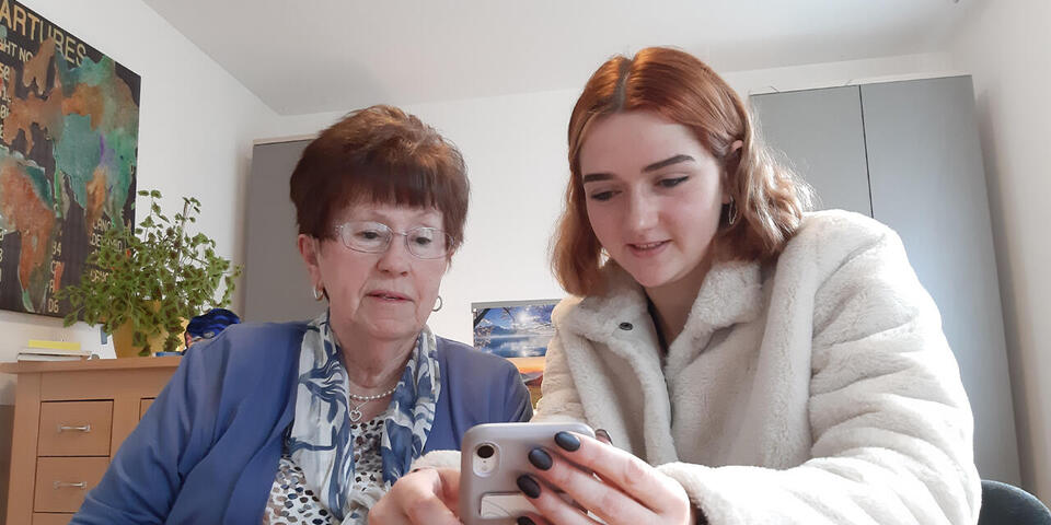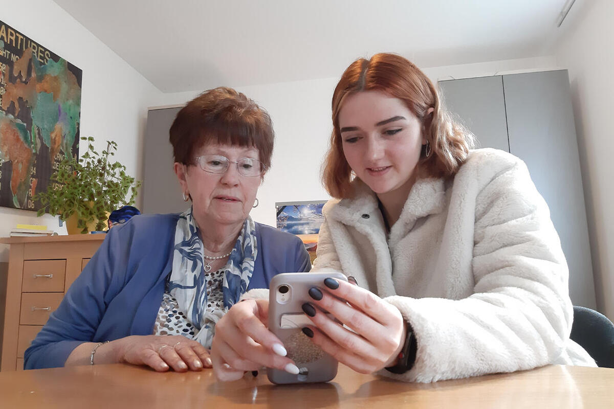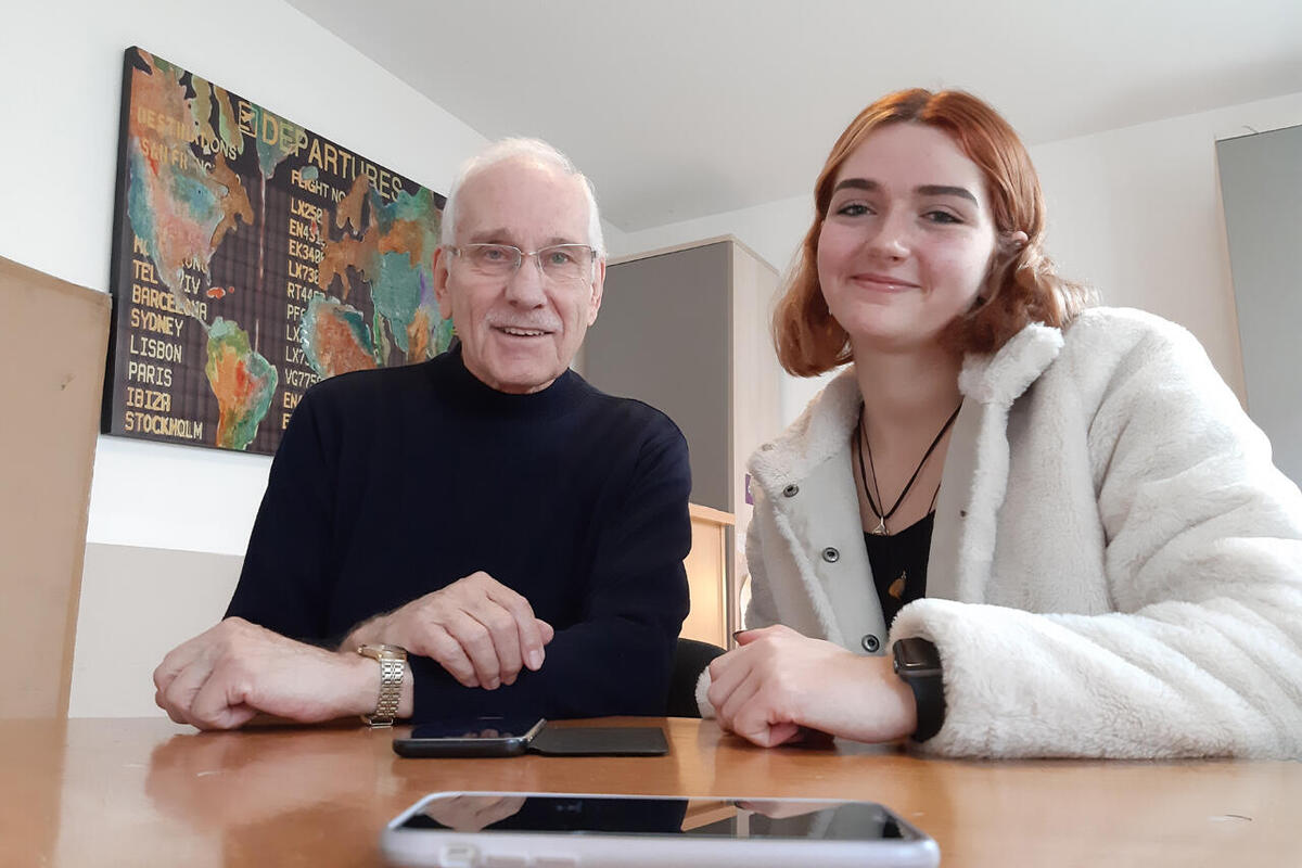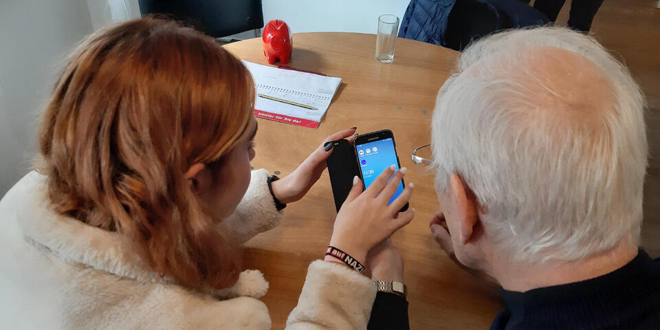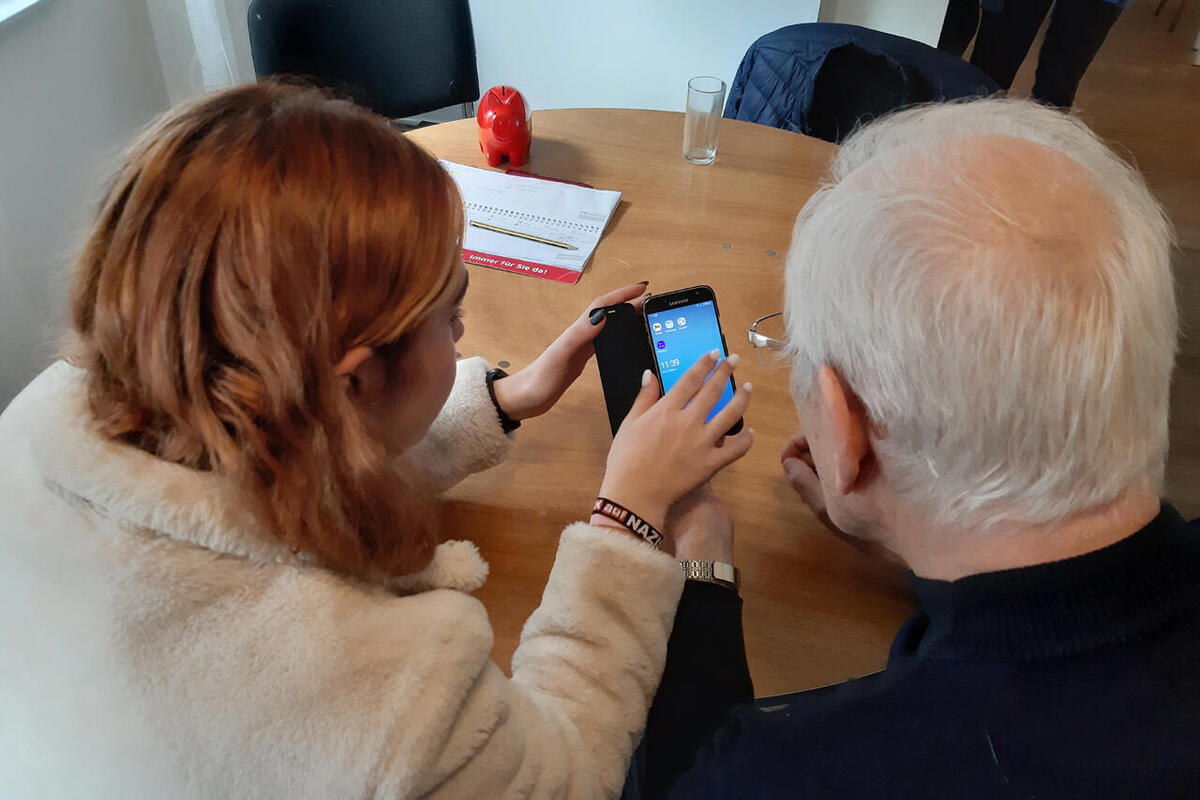 Eine Aufgabe der 19-jährigen Oldenburgerin ist der Tablet- und Handy-Kurs für Senioren. Viele kommen regelmäßig, stellen Fragen und üben den Umgang mit der Technik. Zum Beispiel Gerda (83) und Günther Mühl (80). Dafür nimmt das Paar auch etwas Fahrzeit auf sich. Beide sind mit Feuereifer dabei und stellen viele Fragen, die Niemann gelassen und gern beantwortet. „Es ist doch wundervoll, dass es so etwas gibt“, sagt Gerda Mühl und steckt entschlossen einen Geldschein ins Spendenschweinchen. Die Schulung ist kostenlos. Ihr Mann strahlt währenddessen übers ganze Gesicht. Er und Antonia Niemann haben sein Profilbild auf WhatsApp erstellt: Günther und Gerda lächelnd im Grünen. Das Pärchen freut sich – aber nicht nur über die Hilfe in technischen Fragen. Die junge Frau ist für sie auch eine Informationsquelle. Niemann senkt in den Gesprächen so manche Hemmschwelle. Prompt folgt das Pärchen ihrer Empfehlung und isst Mittag bei einem hippen Italiener in Oldenburg – geplant war eigentlich Fisch.