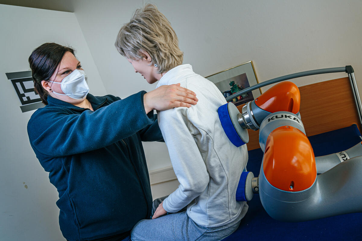 Im Forschungsprojekt wurden daher Pflegende ebenso wie Pflegeempfangende berücksichtigt, um sie an der Technikentwicklung zu beteiligen. Für beide Gruppen gab es klare Ziele wie Stephanie Raudies beschreibt: „Bei der Entwicklung eines roboterunterstützen Patiententransfers, also zum Beispiel der Umlagerung oder Aufrichtung, drehte es sich um die körperliche Entlastung von Pflegekräften und ein vermindertes Risiko für Verletzungen. Für Menschen mit Unterstützungsbedarf wie bei neuromuskulären Erkrankungen war die Entwicklung von passenden Steuerungsmöglichkeiten für einen assistiven Arm dagegen relevant, um ihnen mehr Freiheit und Lebensqualität zu ermöglichen.“