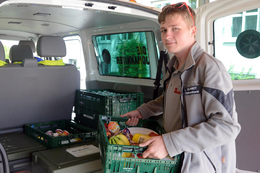Das Küchen-Team kocht auch für die Sanitätsteams in den Unfallhilfsstellen im Zentrum, beim Marschweg-Stadion und in den Weser-Ems-Hallen mit. Die Gerichte werden geordert und dann samt Geschirr und Getränken vom Fahrzeug an die Unfallhilfsstellen gebracht. Das ist einfacher als die Sanitäter alle zur Küche zu bringen. Gefragt sind aber nicht nur Kochkünste. Auch Nervennahrung, weiß Dluzak, muss immer bereitliegen: Süßigkeiten, Obst, Kaltgetränke und Kaffee sind rund um die Uhr für alle Dienstleistenden greifbar.