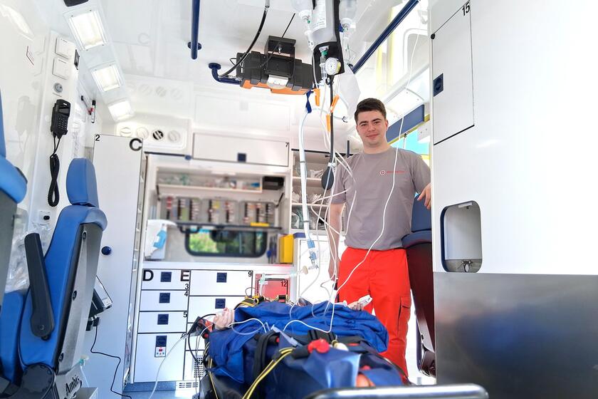 Alle Fahrzeuge waren geöffnet und die Gäste konnten sie und die Ausstattung besichtigen und Fragen stellen. Schoone betonte zudem, wie wichtig erste Maßnahmen vor Ort sind, um Verletzte vor weiterem Schaden zu schützen und ermutigte dazu, Erste Hilfe zu leisten. Die Patientenversorgung im Rettungswagen wurde mit einer Puppe nachgestellt – das kam vor allem bei den jüngeren Gästen gut an. Kloberdanz erklärte, dass moderne Rettungswagen heute als „fahrende Intensivstationen“ gelten.