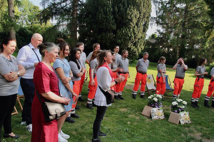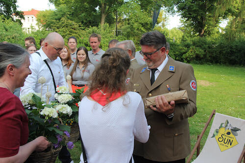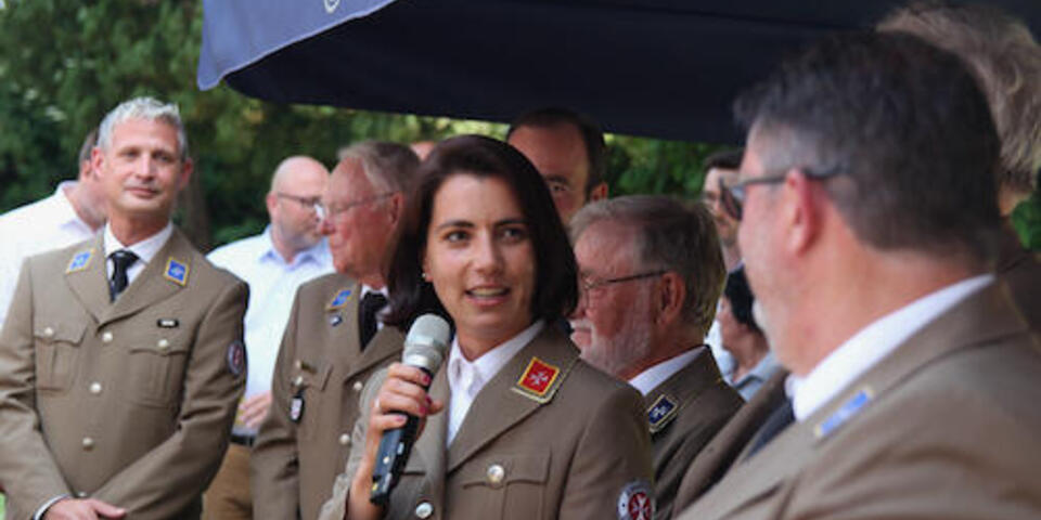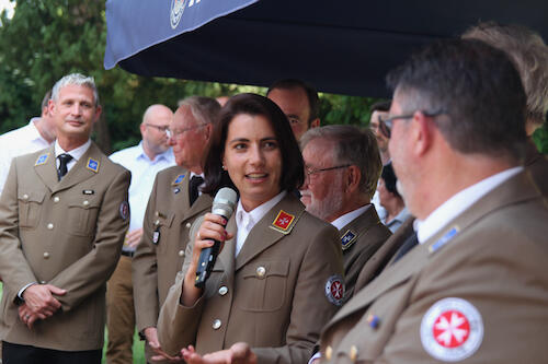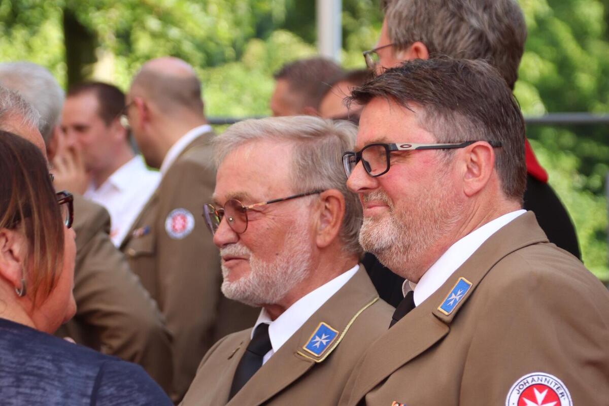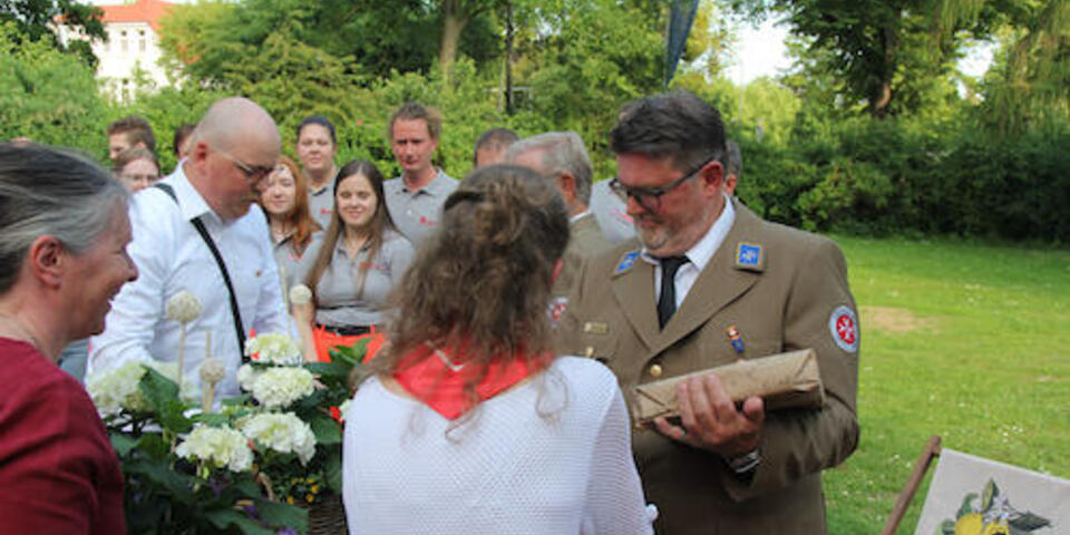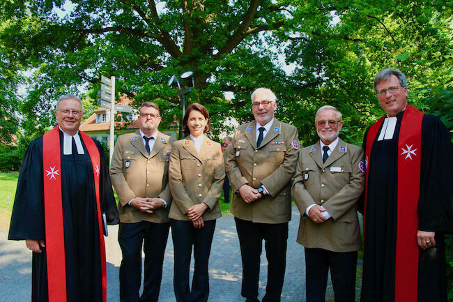 Nicht nur viele Gäste aus dem Familien- und Freundeskreis der beiden frisch ins Amt Eingeführten versammelten sich beim Empfang im Johanniterhaus. Der Garten des traditionsreichen Hauses (es ist auch der Hannoverschen Genossenschaft des Johanniterordens eng verbunden) wurde im Anschluss an die offizielle Zeremonie auch zum Veranstaltungsort für das Sommerfest des Ortsverbands Deister. Haupt- und Ehrenamtliche aus allen Bereichen waren dabei; zu den Gästen zählte auch Moritz v. Münchhausen, Verbindungsritter des Ortsverbands Deister zur Subkommende Calenberg des Johanniterordens.