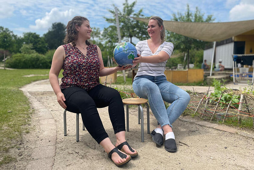 Fabienne Henle kam vor einem Jahr nach Deutschland. Aufgewachsen ist sie in Namibia mit deutschen Großeltern, die nach Afrika ausgewandert waren. Sie studierte Sportwissenschaften, spezialisierte sich auf Kinderbewegungstherapie und kam über Zwischenstationen in New York und Südafrika nach Deutschland. Hannover war für sie ein Zufall, der sich als Glücksgriff entpuppte. „Ich fühle mich sehr wohl hier, in der Stadt und bei den Weltkindern“, sagt die 25-Jährige, die neben Englisch und Deutsch auch Afrikaans spricht. Ihre Kollegin Anna Boland stammt aus der Nähe von Washington, D.C. und wuchs mehrsprachig auf. Über ihren Vater, einen Deutschlehrer, kam sie schon als Kind beim Schüleraustausch regelmäßig nach Deutschland. Göttingen machte während eines Auslandsjahres im Studium den Anfang. Nach Stationen als Englischlehrerin an Schulen kam Anna Boland im Frühjahr zu den Weltkindern. „Das Team ist jung, wir können hier unsere eigenen Ideen einbringen und umsetzen“, sagt sie, das sei sogar trotz der Corona-Einschränkungen möglich gewesen.