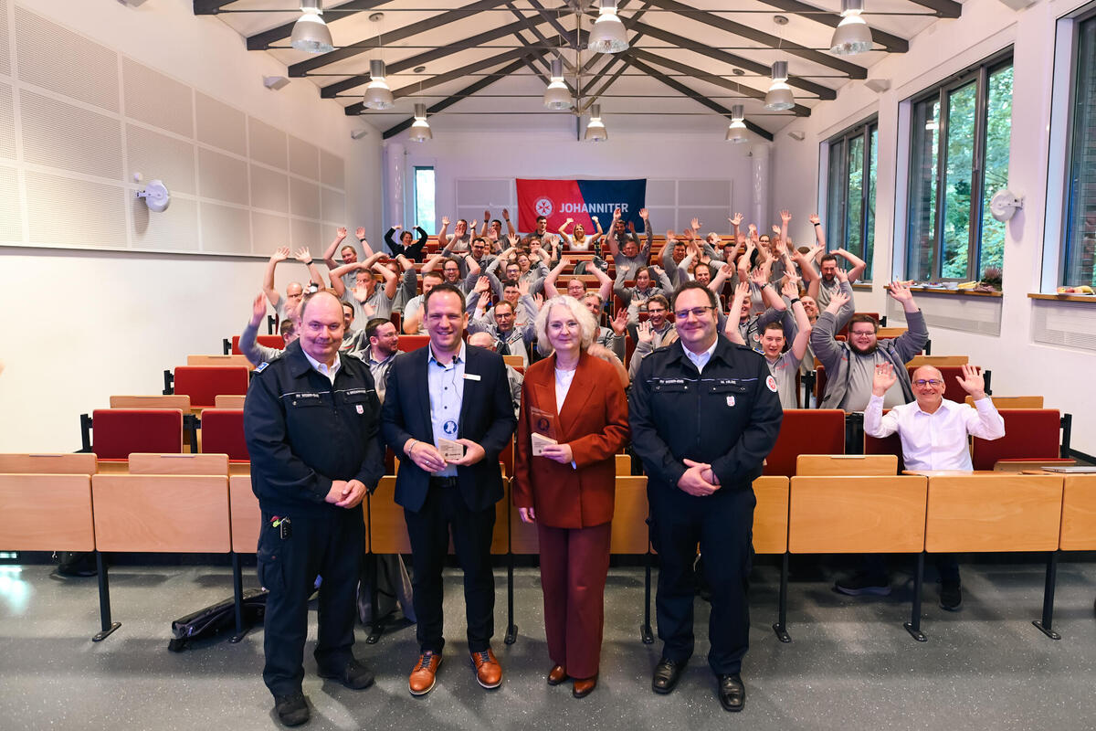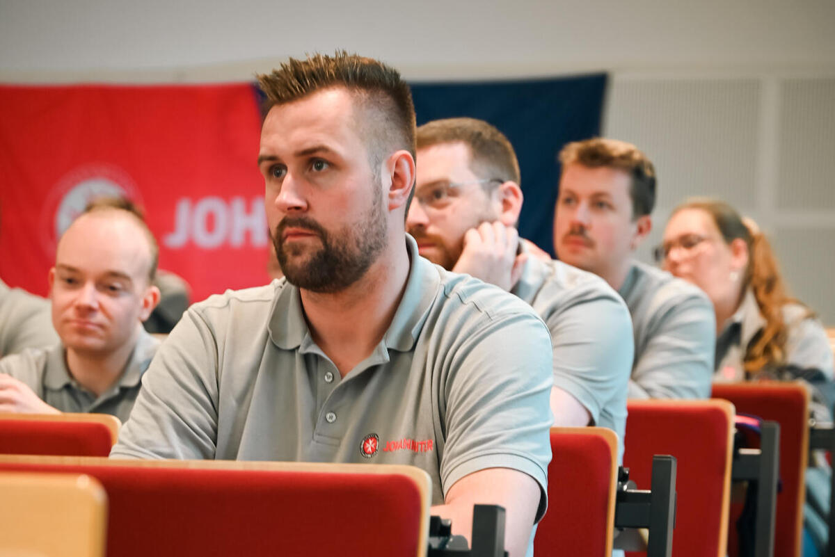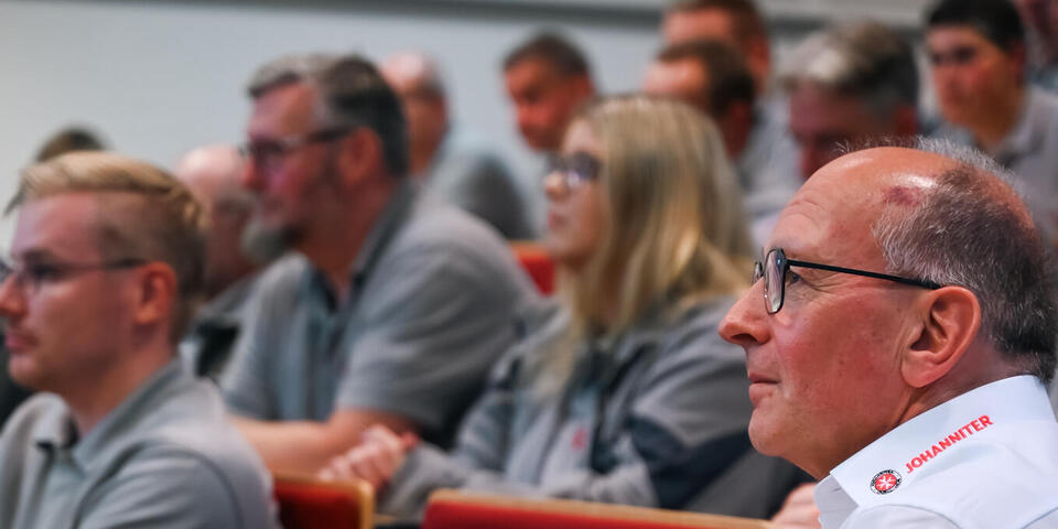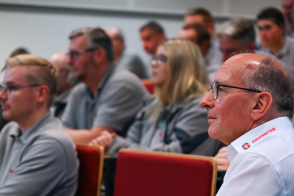 Sie gehören zu dem Besten, was der Bevölkerungsschutz der Johanniter-Unfall-Hilfe in Weser-Ems zu bieten hat. Rund 60 Führungskräfte, ausschließlich ernannte und ehrenamtlich aktive Gruppen-, Zug- und Verbandführende haben sich zu einer zweitägigen Fachtagung am Standort Loy des Niedersächsischen Landesamtes für Brand- und Katastrophenschutz (NLBK) getroffen. „Es geht darum, dass wir uns weiterentwickeln“, betonte Regionalbereitschaftsführer Martin Hilse. „Die Abstände zwischen den Katastrophen werden immer kürzer, die Herausforderungen immer größer. Darauf müssen wir vorbereitet sein.“ Eine Ansicht, die „Hausherrin“ Susanne Küther, Abschnittsleiterin 1 des NLBK, teilt: „Wir leben in turbulenten Zeiten.“ Es freue sie ganz besonders, dass die Johanniter, mit denen sie immer sehr gut zusammengearbeitet hat, ihre Tagung in Loy abhalten. Auch Pascal Drewes, Dezernent Katastrophenschutz im NLBK, griff diesen Faden auf. „Wir leben ganz offensichtlich in einer Welt des Wandels“, sagte er in seiner Keynote für die Fachtagung Bevölkerungsschutz der Johanniter in Weser-Ems. „Unser Ziel ist die Bevölkerung zu schützen. Das ist unsere Aufgabe, deshalb sitzen wir hier.“
