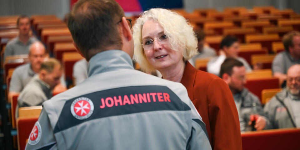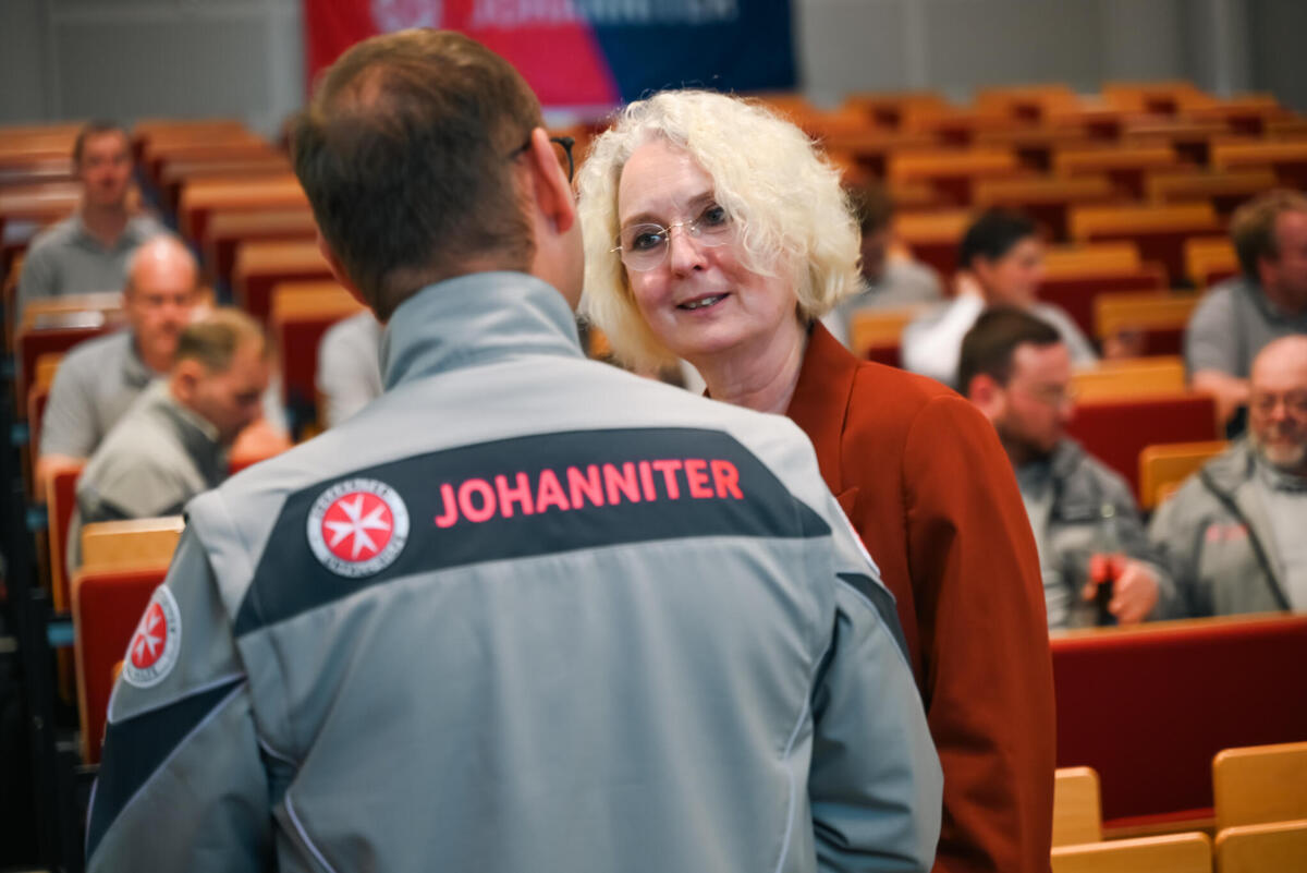Trotzdem hat auch das NLBK Wünsche und Forderungen an die Hilfsorganisationen. Es werde zum Beispiel eine Vereinheitlichung von Einheiten angestrebt. „Wir wollen wissen, was genau da kommt, wenn uns etwas angekündigt wird.“ Noch sei es so, dass innerhalb von Hilfsorganisationen gleiche Namen für Einheiten mit unterschiedlicher Ausstattung verwendet werden. Die Johanniter in Weser-Ems seien da schon sehr weit vorne. Zudem muss besser aufgezeichnet werden, wenn Einheiten doppelt verplant werden. Es sei zulässig, Sanitäts- und Betreuungsgruppen sowohl im Behandlungsplatz 50, im Betreuungsplatz 500 als auch im Wasserrettungszug zu melden. „Wenn wir alarmieren, muss das kommen, was wir erwarten.“ Dazu gehöre, dass benannte Einsatzkräfte auch tatsächlich verfügbar sind. Problem könne hier die eigene Betroffenheit sein. All das sei zu bedenken und mit den Hilfsorganisationen zu planen. Aber, so Drewes, er sei zuversichtlich, dass durch das frühzeitige Planen der Bevölkerungsschutz in Niedersachsen auf die kommenden Herausforderungen gut vorbereitet ist. „Die Johanniter sind dabei wie die anderen beteiligten Organisationen ein wichtiger, unverzichtbarer Teil.“