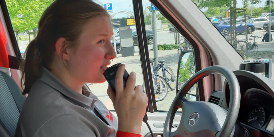Lang ist die Fahrt aber nicht. Nach wenigen hundert Metern sehen Bleke und Wiedenhoeft zwei Frauen die am Boden liegen – Fußgängerin gegen Radfahrerin. Schnell ist klar, sie müssen schauen, ob Hilfe benötigt wird. Wiedenhoeft ist kurz unsicher: Jetzt halten, mitten auf der Kreuzung? Die junge Frau ist sichtlich angespannt, sie befürchtet andere Autofahrer zu behindern. Bleke wird zum Trainer und gibt freundlich aber bestimmt Anweisungen. Er verlässt den KTW und klärt die Lage. Die Fahrt kann weitergehen. Wiedenhoeft zögert, sich wieder in den Verkehr einzuordnen. „Da schlägst du hart links ein und biegst ab“, lässt sich Bleke von hinten hören, laut, aber ohne jede Spur von Ungeduld.