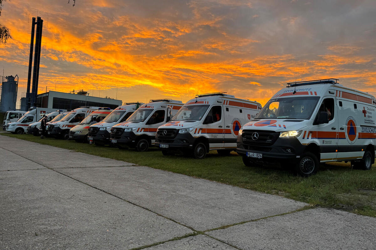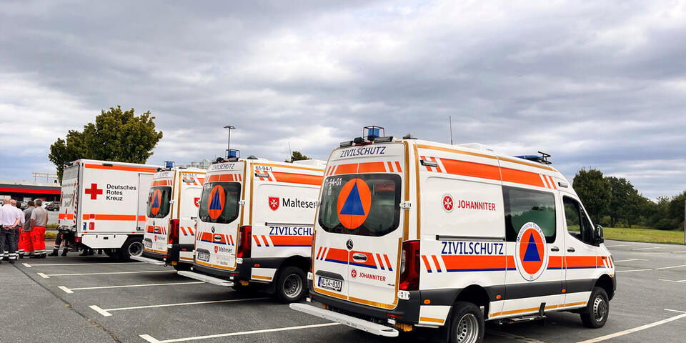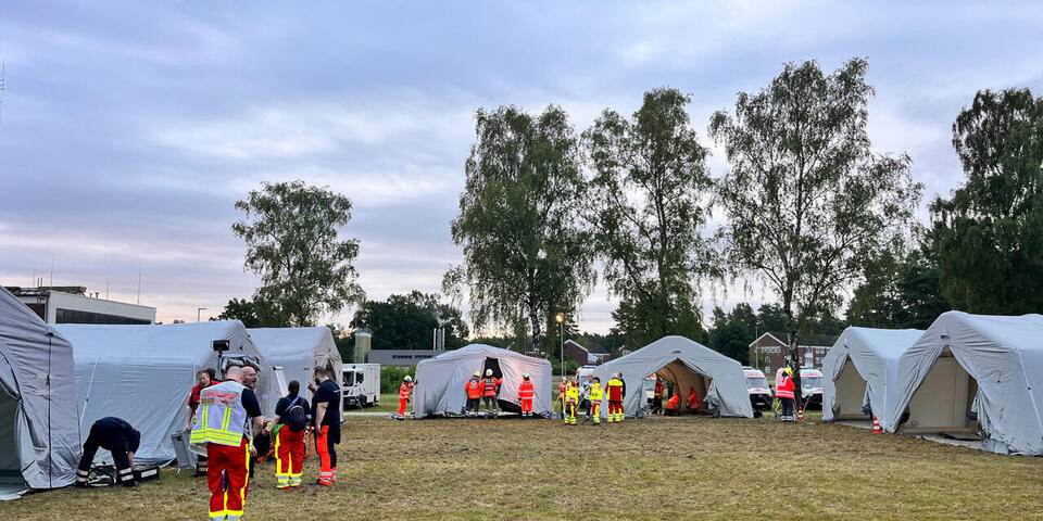 In Deutschland gibt es 61 sogenannte Medical Task Forces (Medizinische Einsatzgruppen, kurz MTF). Das sind standardisierte, sanitätsdienstliche und arztbesetzte taktische Einheiten, die bundeslandübergreifend Katastrophenhilfe leisten sollen. Zwei davon, die MTF 3 Lüneburg und die MTF 6 Oldenburg, haben am Wochenende die Bewältigung einer komplexen Schadenslage in Celle geübt. Mit dabei waren Einsatzkräfte des Ortsverbands Wilhelmshaven der Johanniter-Unfall-Hilfe, die für die MTF 6 einen Gerätewagen Sanität (GW San) und einen geländegängigen Krankentransportwagen (KTW ZS) stellen. Gemeinsam mit Kolleginnen und Kollegen der anderen Mitglieder der MTF übten Gruppenführer Eric Kohlschreiber, Arzt Dr. Daniel Jürgensen, Udo Jostmeier und Andreas Ewinkel den Aufbau und Betrieb von Behandlungsplätzen für eine Vielzahl Verletzter nach einem schweren Unwetter mit beschädigter und zerstörter Infrastruktur einschließlich medizinischer Einrichtungen. Insgesamt wurden mehr als 110 Patienten aller Sichtungskategorien von leicht bis lebensgefährlich verletzt in den sieben Behandlungszelten versorgt. Am Tag zuvor waren auf dem Truppenübungsplatz Bergen bereits die Verlegefahrt und der Marsch im Verband geübt worden.