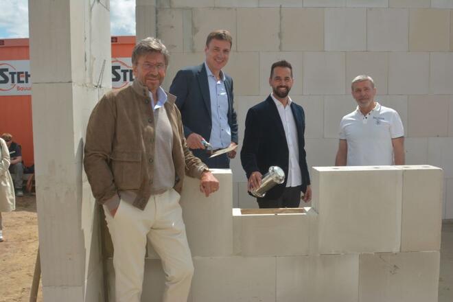 Bei strahlendem Sonnenschein ist die Zeitkapsel in das Gebäude der neuen Kita Franz an der Franz-Grashof-Straße eingemauert und damit offiziell das Bauvorhaben gestartet worden.
