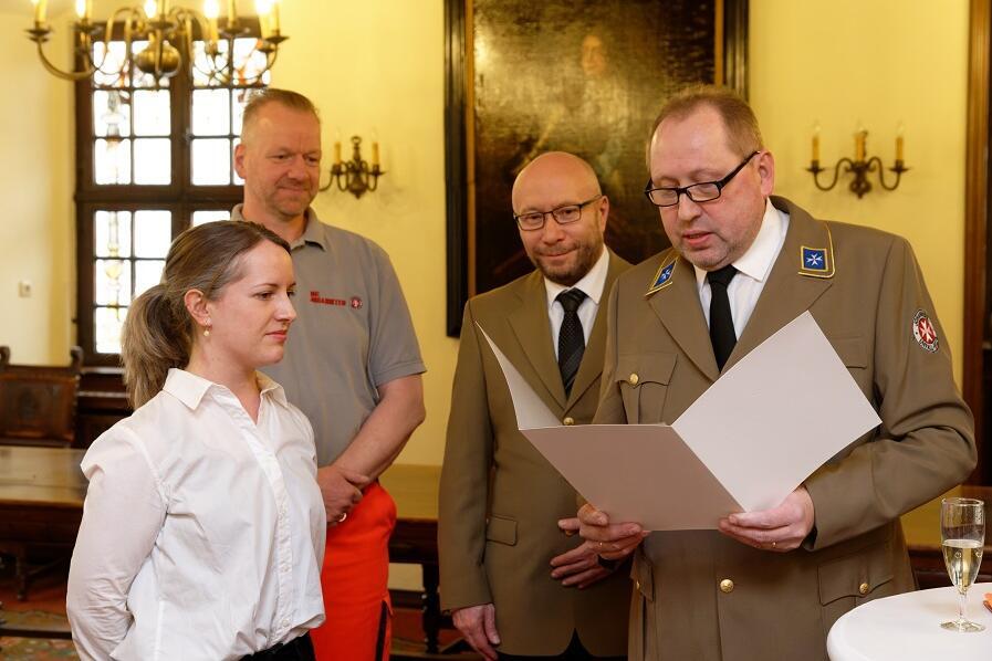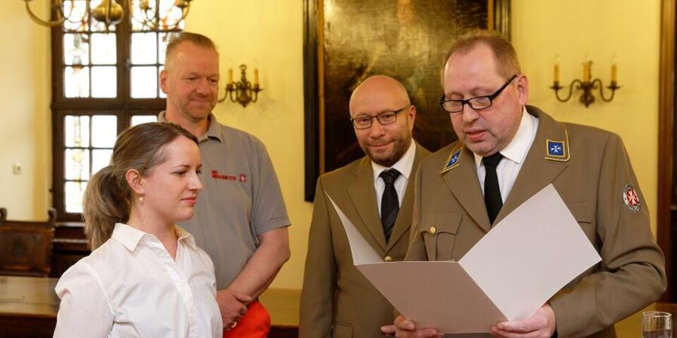 Die Johanniter verstärken ihr Celler Ehrenamt: Amtseinführung von der neuen Ortsverbandsärztin Dr. Christina Wolf und dem Einheitsführer Christoph te Uhle im Alten Rathaus Celle