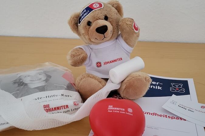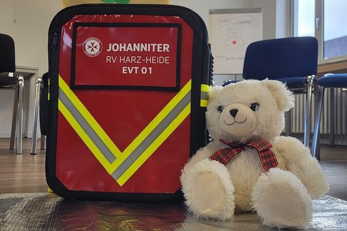 Die Johanniter-Teddyklinik hat jedoch einen ernsten Hintergrund, denn das erste Ausbildungsmodul „Sicherheit und erste Hilfe für Kinder“ der Ersten Hilfe mit Selbstschutzinhalten (EHSH) ist hier integriert. Diese Kurse werden vom Bundesamt für Bevölkerungsschutz und Katastrophenhilfe gefördert. „Wir haben bereits erste Erfahrungen mit der Teddyklinik und dieser besonderen Herangehensweise an EHSH gemacht“, erzählt Sarah Pfaffenrath, Leiterin Ehrenamt in Salzgitter und selbst Mutter von zwei kleinen Kindern. „Kinder wie auch die begleitenden Erwachsenen machen begeistert mit.“