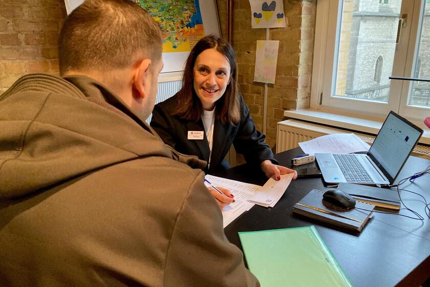 Mit ihrer neuen Tätigkeit hat Tamasha Sherstyuk ihre berufliche Bestimmung gefunden. Denn eigentlich kommt sie aus einer ganz anderen Branche. Nach dem Betriebswirtschaftsstudium in Hannover arbeitet sie viele Jahre für Banken im In- und Ausland. Spricht sie über ihre neue Arbeit, ist zu spüren, wie viel sie ihr bedeutet. „Meine neuen beruflichen Aufgaben finde ich einfach wichtiger und es ist toll zu sehen, was wir so alles bewirken können“, sagt sie. Die Geflüchteten suchen bei ihr Hilfe im Umgang mit Behörden, benötigen Unterstützung bei Fragen zu Schule oder Kindergarten oder es geht um den Kontakt zu Krankenkassen oder potenziellen Arbeitgebern. Ihr jüngstes Erfolgserlebnis: Sie hat einer Konditorin aus Odessa zu ihrem Traumjob in einem Braunschweiger Café in Nähe der Universität verholfen. „Ich empfinde es einfach als total befriedigend und sinnstiftend diese Beratungen und Begleitungen zu machen“. Viele der Menschen, die zu ihr kommen, kennt sie schon von Anfang an, seitdem der Krieg ausgebrochen ist. „Es sind viele schlimme Schicksale dabei und jeder hat eine einzigartige Geschichte. Dankbar macht mich, dass ich spüre, dass die Menschen sich bei uns wohl fühlen. Sie kommen mit offenem Herzen und wenden sich ganz vertrauensvoll an uns.“