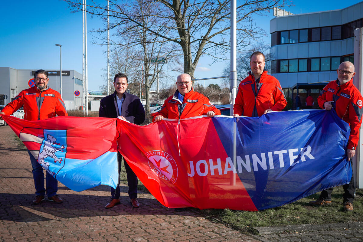„Die Idee ist damals bei einem Besuch des Bürgermeisters hier in der Rettungswache entstanden“, berichtet Silbermann. „Wir fühlen uns hier als Johanniter in Garbsen sehr wohl und möchten uns weiterentwickeln.“ Die Johanniter sind von der Region Hannover beauftragt mit der Sicherstellung des Rettungsdienstes in der Stadt, außerdem bieten sie den Hausnotruf, Erste-Hilfe-Kurse oder Schulsanitätsdienst in der Region an. „Wir möchten uns für die Menschen engagieren und etwas tun“, bekräftigt der Ortsbeauftragte. Dieses Zugehörigkeitsgefühl freut auch den Bürgermeister. Nach wie vor sind Johanniter und Stadtverwaltung im Gespräch über einem neuen Standort im Stadtgebiet, denn die Rettungswache in Berenbostel ist längst in die Jahre gekommen, eine neue, moderne Lösung muss her. „Die Johanniter sind an vielen Stellen präsent, sei es an Schulen oder mit dem Rettungswagen in der Stadt, daher sehen wir die Pläne sehr positiv“, sagt Bürgermeister Claudio Provenzano. Auch für Philipp Petzold, Teamleiter Rettungsdienst am Johanniter-Standort Garbsen, ist das gemeinsame Hissen der Flaggen ein starkes Signal, um die Verbundenheit der Wache und ihrer Mitarbeitenden zur Stadt zu demonstrieren. „Wir sind hier 24 Stunden am Tag für die Menschen der Stadt Garbsen im Einsatz – das tun wir gern und möchten wir in den kommenden Jahren gern weiter ausbauen“, so Petzold.