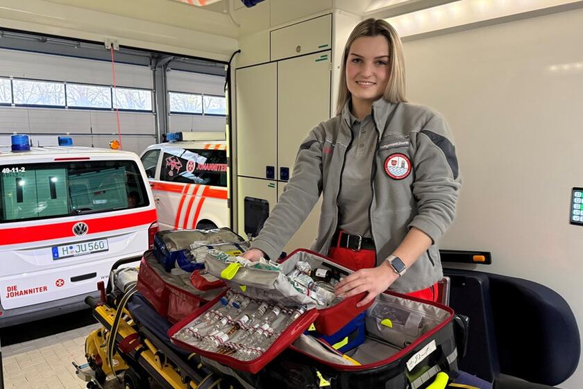 „Was mich genau erwartet, wusste ich vorher nicht, aber ich wurde positiv überrascht. Die Praktika im Krankenhaus und auf der Rettungswache sowie intensive Besprechungen nach den Einsätzen haben mir geholfen, alles zu verstehen und gut zu verarbeiten. Jetzt bin ich Rettungssanitäterin.“