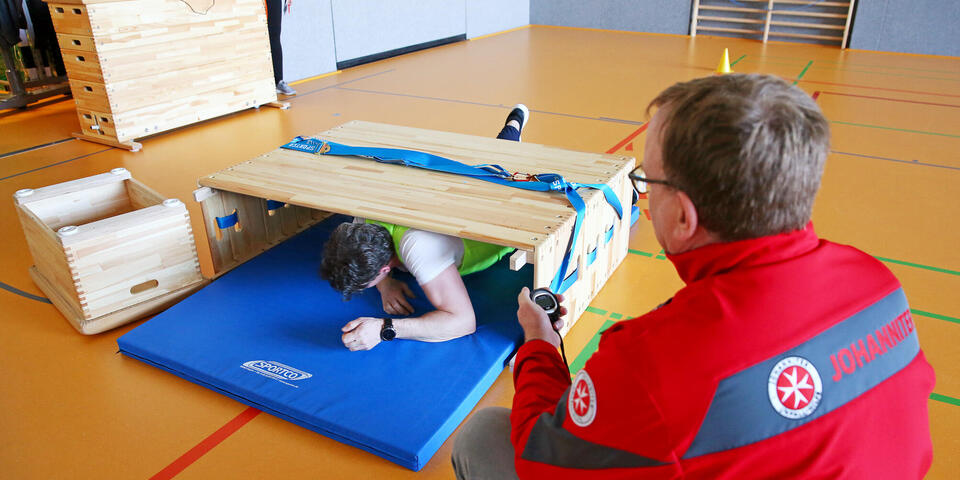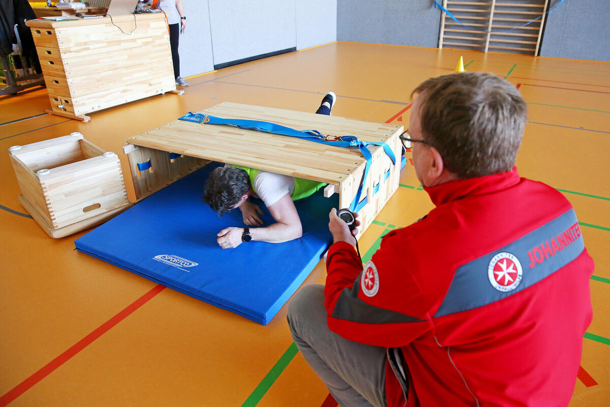 Morgens 8 Uhr in einer Sporthalle in Gronau, Landkreis Hildesheim: Für Marie aus Einbeck steht ein straffes Programm auf der Tagesordnung. Die 23-Jährige hat eine Einladung zum Assessment-Center der JUH erhalten und darf ihre Eignung als künftige Notfallsanitäterin unter Beweis stellen. 60 Personen durchliefen an zwei Tagen das Assessment-Center, rund 50 % werden im Nachgang an einem persönlichen Vorstellungsgespräch teilnehmen. Dennoch gibt es nur insgesamt sechs Ausbildungsplätze auf den drei Lehrrettungswachen im Regionalverband Südniedersachsen.