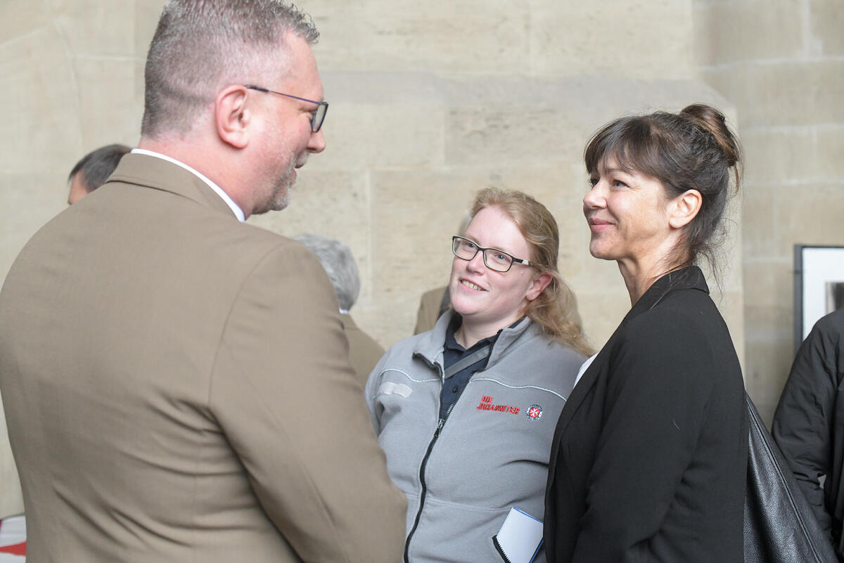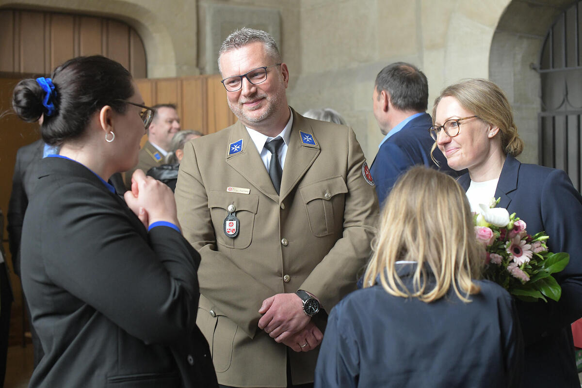 Neben zahlreichen Johannitern, Kollegen des THW, des ASB und der Berufsfeuerwehr waren auch SPD-Landtagsabgeordnete Antonia Hillberg und Klaus Krumfuß, stellvertretender Samtgemeindebürgermeister Leinebergland unter den Gästen.