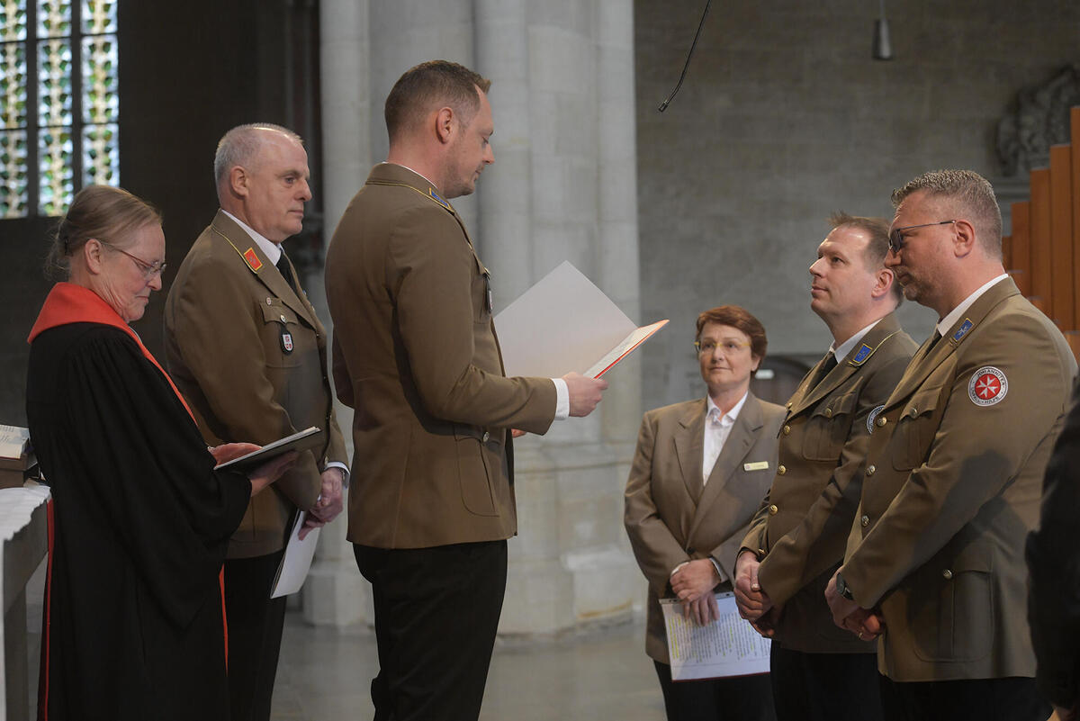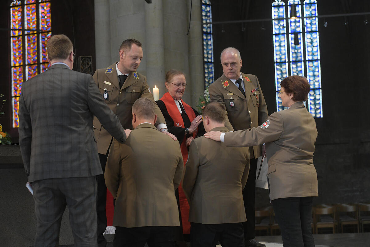 Die Verpflichtung mit anschließender Segnung führte Inge Matern, Pastorin für den Landesverband Niedersachsen/Bremen durch. Die Ernennungsurkunde verlasen Marius Dossow und Claus-Dieter Schwab als Vorstände des Regionalverbandes Südniedersachsen. Helge Vogelsang und Ronnie Love standen Torsten Bayer als stellvertretender Dienststellenleiter und Fachbereichsleiter Soziale Dienste und Ortsverbandsärztin Eva Cramer als Paten zur Seite und sprachen für sie Segensworte aus.