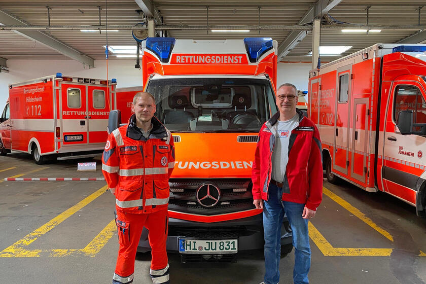 Die Johanniter der Rettungswache Hildesheim freuen sich mit Jörg Elsner. Er hat letzte Woche gemeinsam mit zwei weiteren Kollegen seine Prüfung zum Notfallsanitäter erfolgreich abgeschlossen. Jörg ist schon viele Jahre bei den Johannitern tätig. Er absolvierte 2014 im Rahmen seiner Rettungsassistenten-Ausbildung sein Praktikum bei den Johannitern in Göttingen. 2015/16 leistete er sein Anerkennungsjahr in der Johanniter-Rettungswache in Alfeld ab und wechselte dann im Jahr 2016 nach Hildesheim. Durch seine langjährige Berufserfahrung konnte er jetzt seine Ergänzungsprüfung zum Notfallsanitäter machen. Bei der Berufsfeuerwehr Göttingen nahmen er und seinen beiden Kollegen deshalb an einem Vorbereitungskurs in Modulform mit insgesamt 64 Unterrichtsstunden teil. Vom 19. bis 21. April standen die Prüfungen an. An den ersten beiden Tagen mussten ein internistisches und ein traumatologisches Fallbeispiel abgearbeitet werden. Am dritten Tag erfolgte die mündliche Prüfung. Mike Schönitz, stellvertretender Rettungswachenleiter in Hildesheim, gratulierte Jörg und den beiden anderen Kollegen im Namen aller Johanniter herzlich. Dem schließen wir uns an!