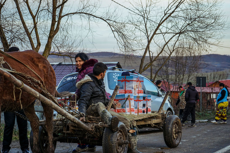 In den frühen Morgenstunden des zweiten Weihnachtsfeiertages waren die Helferinnen und Helfer in Wunstorf (Region Hannover) in Richtung Rumänien aufgebrochen. Mit drei vollgepackten Lkw und zwei Begleitfahrzeugen hatte der Konvoi am Dienstag nach 36-stündiger Fahrt den Zielort in Bistritz erreicht. Nach der dringend nötigen Nachtruhe konnten die Hilfsgüter im Logistikzentrum umgeladen werden, sodass die erste Ladung sofort weiter in die Ukraine nach Kiew transportiert werden konnte. Danach unterstützten die Johanniter aus Niedersachsen/Bremen spontan noch die Kollegen vom Weihnachtstrucker aus Landshut, die eine Verteilaktion in einer Romasiedlung rund 40 Kilometer vom rumänischen Dej entfernt organisiert hatten.