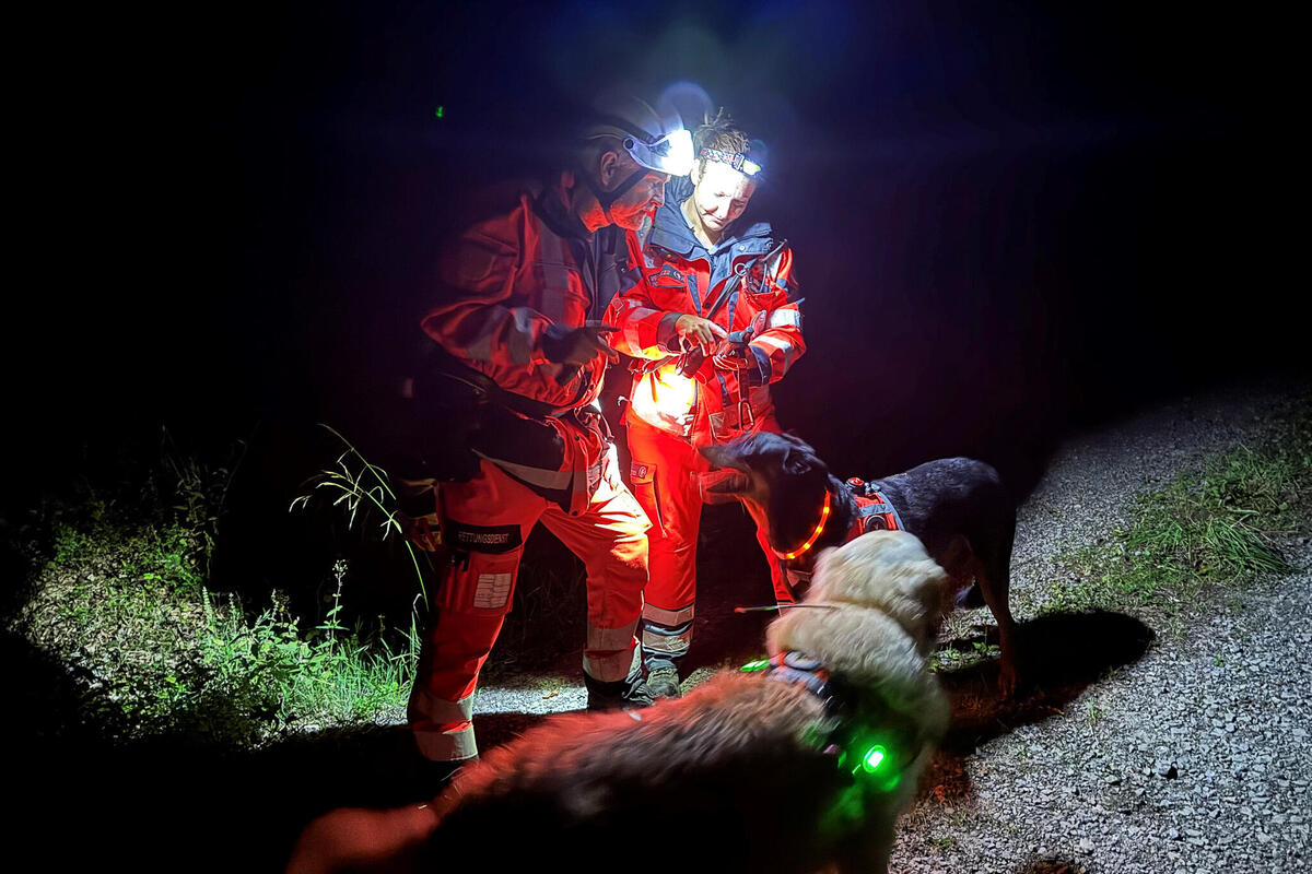 Zuvor hatte ein Anwohner SOS-Lichtsignale aus einem angrenzendem Waldgebiet in Hann. Münden ausgemacht und die Polizei darüber informiert. Vor der Alarmierung der beiden Rettungshundestaffeln, hatten bereits die Drohnenstaffel der Feuerwehr und der Polizeihubschrauber Phönix das Waldgebiet überflogen und nichts finden können.