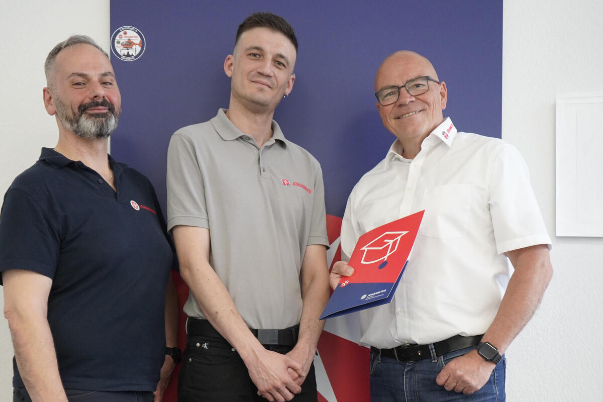 Vom ersten Austausch bis zur erfolgreichen Weiterqualifizierung: Nun hat Kimon Rudolf als erster internationaler Anwärter der Johanniter-Akademie seine Urkunde als Notfallsanitäter erhalten und steht fest im Berufsleben.