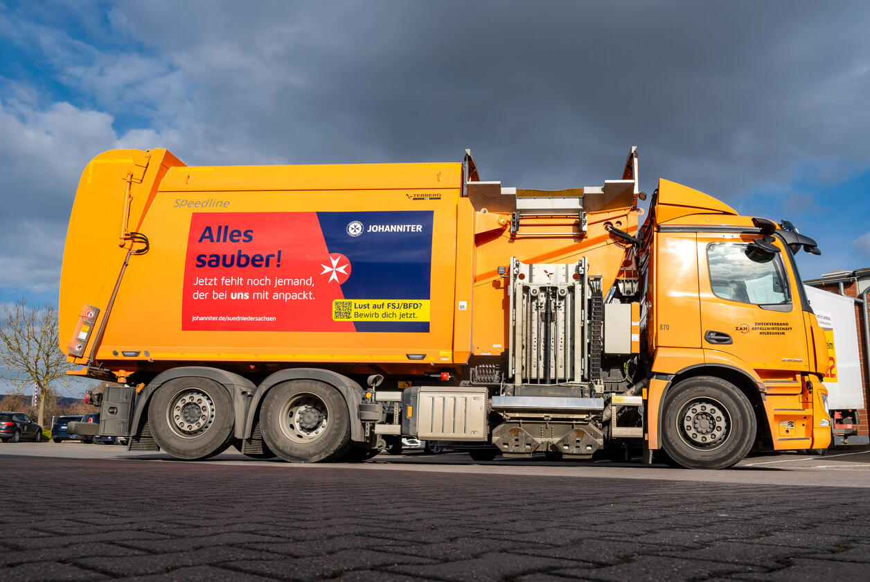 Die Johanniter in Hildesheim setzen gemeinsam mit dem Zweckverband Abfallwirtschaft Hildesheim (ZAH) eine neue Marketingkampagne um: Ab sofort werden zehn Müllfahrzeuge des ZAH als mobile Werbeflächen für die Johanniter genutzt. Damit sollen die Dienstleistungen der Johanniter in der Region sichtbarer werden und gezielt neue Mitarbeiterinnen und Mitarbeiter gewonnen werden.